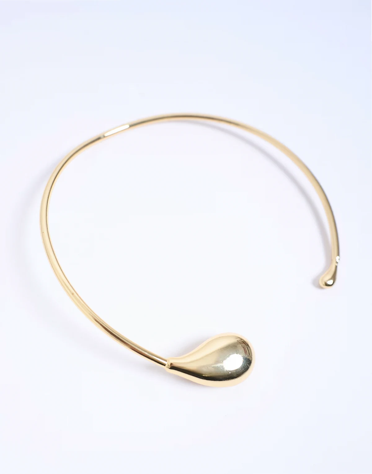 Okrągły naszyjnik Nila ma smukły, elegancki kształt z abstrakcyjnym detalem w kształcie łezki. Końce są otwarte dzięki czemu można dopasować go do swoich potrzeb.