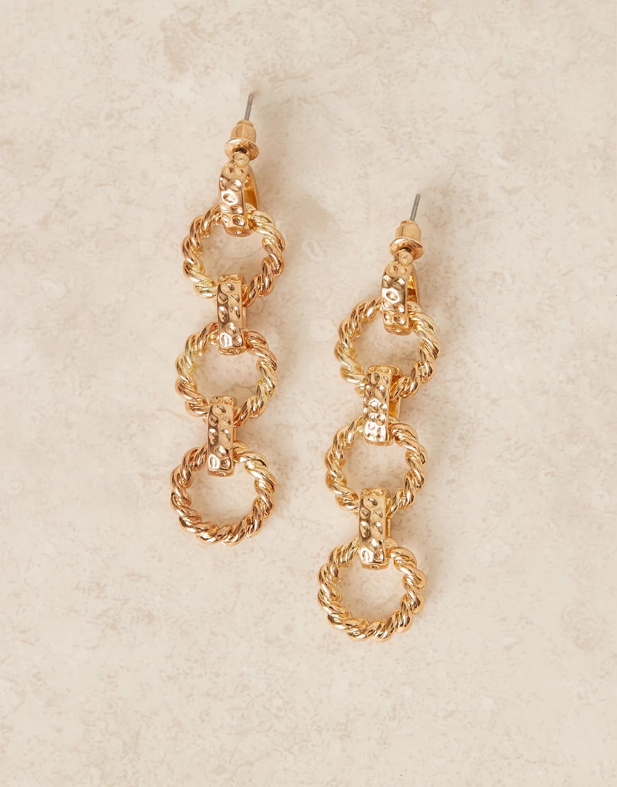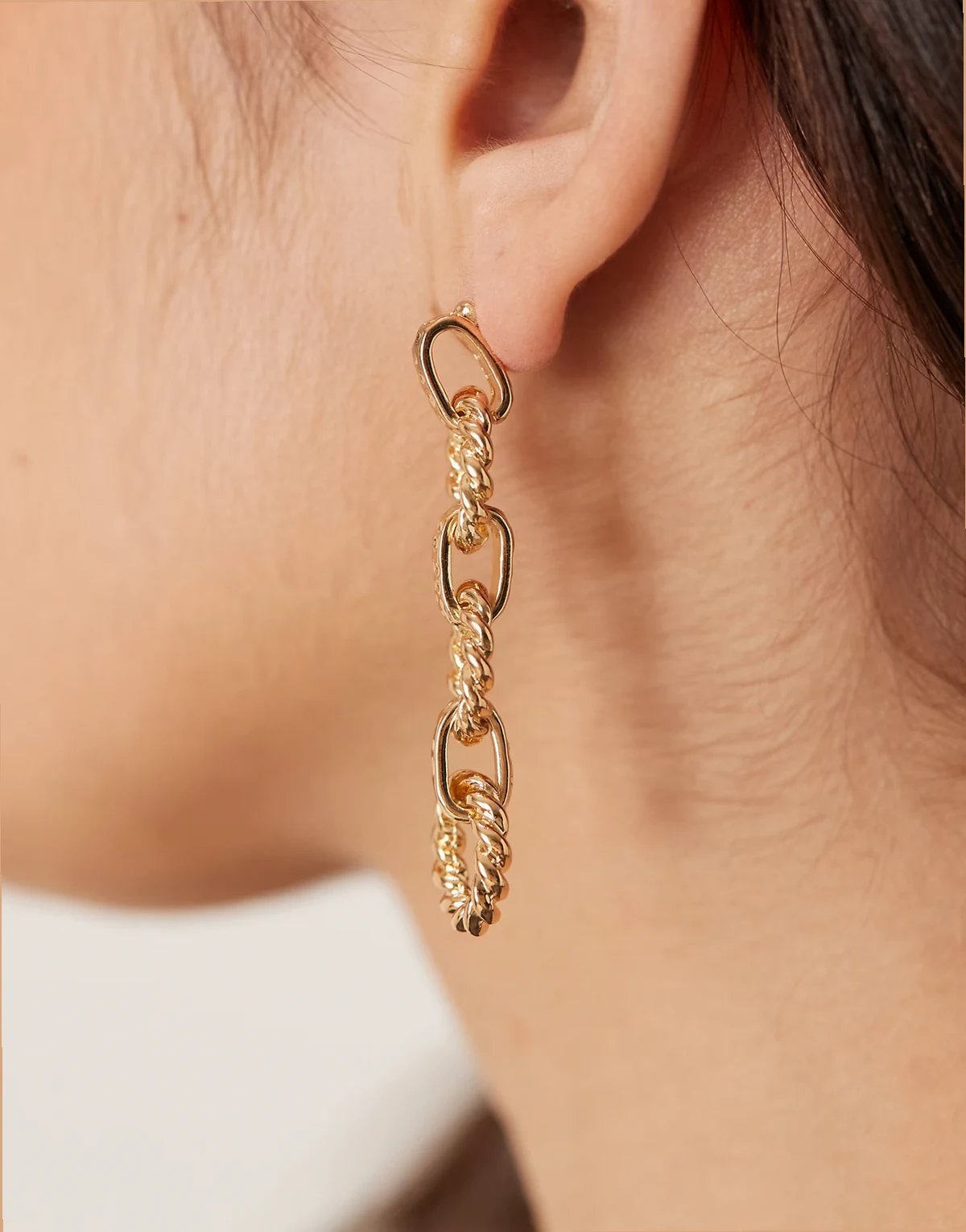 – Długie kolczyki w odcieniu złota z potrójnym łańcuszkiem