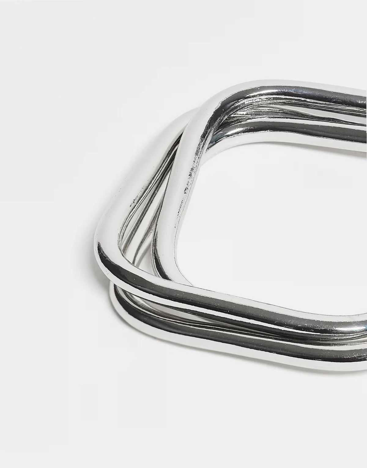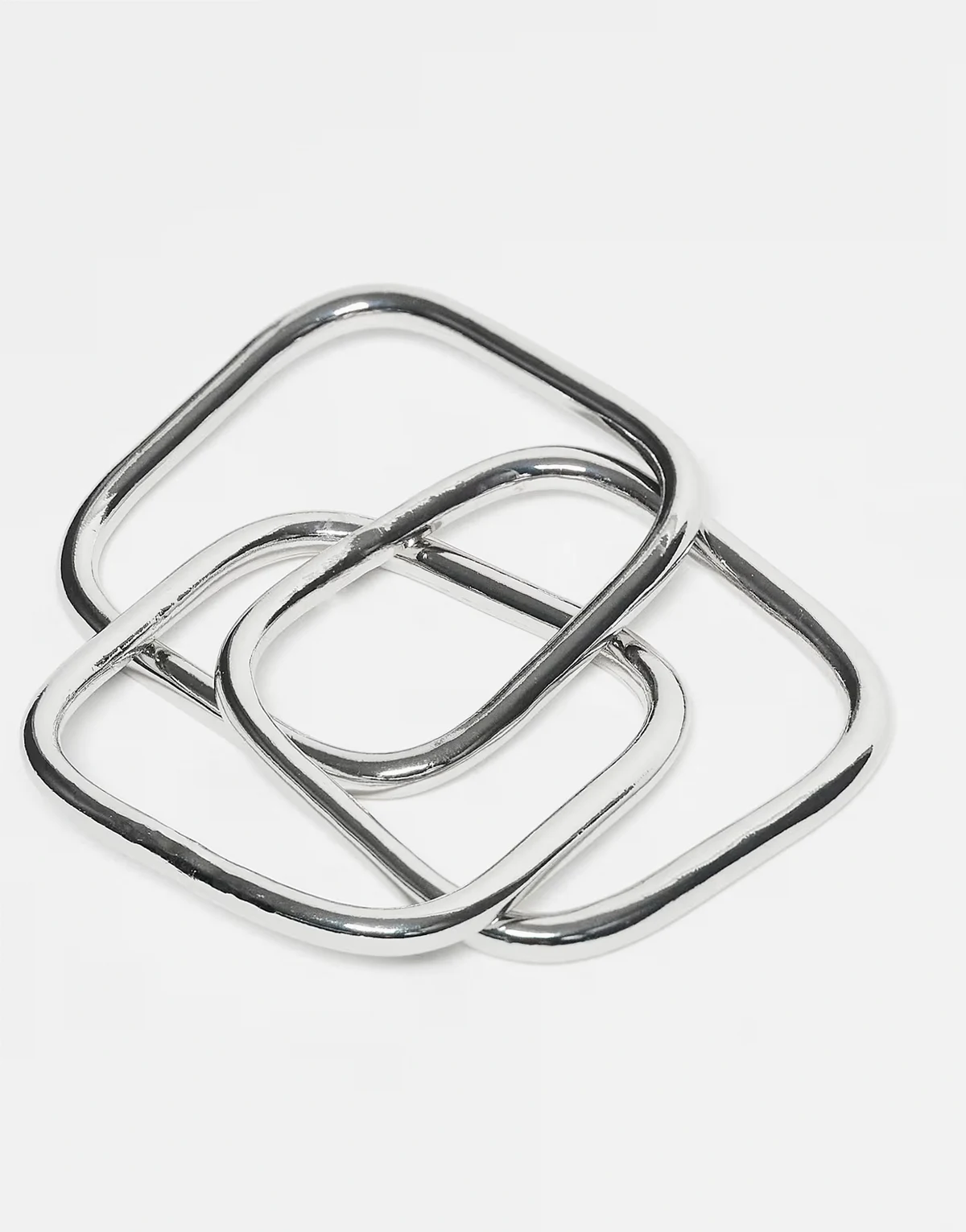 4. – Zestaw 3 połączonych kwadratowych bransoletek typu bangle w kolorze srebrnym