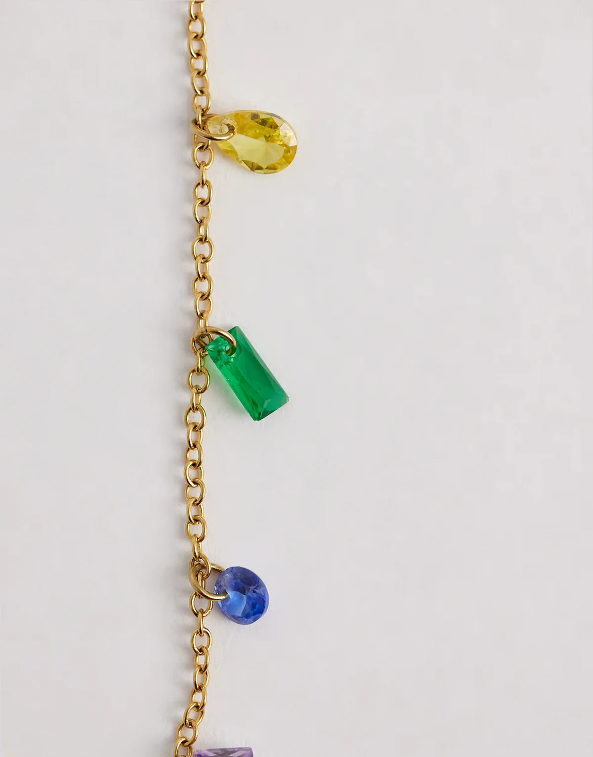 – Delikatna bransoletka łańcuszkowa z wodoodpornej stali nierdzewnej w odcieniu złota z kolorowymi zawieszkami