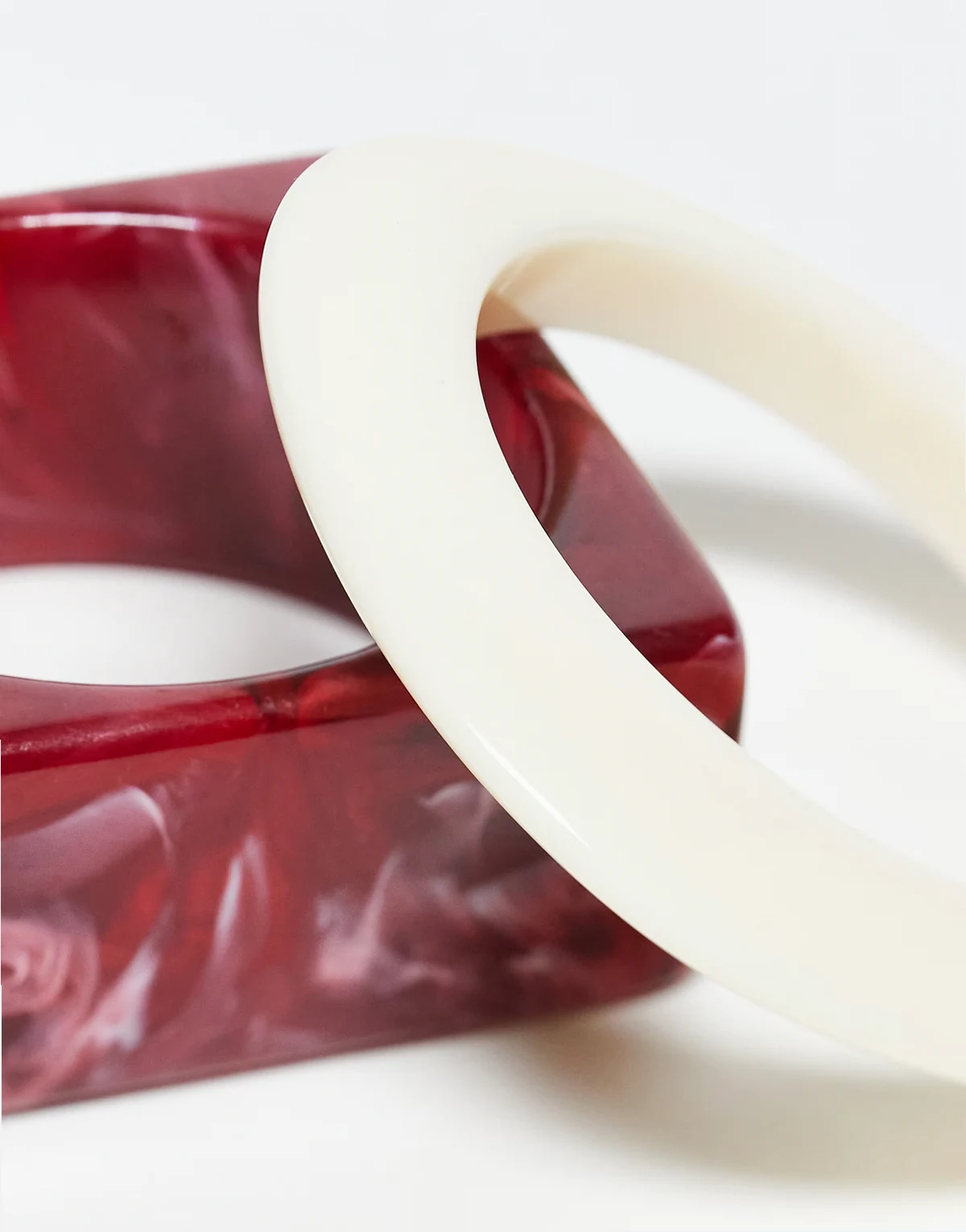 4. – Zestaw 2 bransoletek z tworzywa w różnych kształtach i kolorach