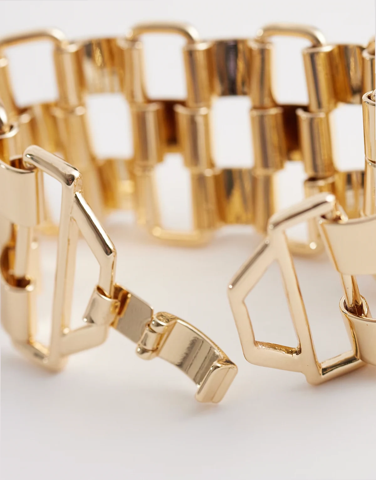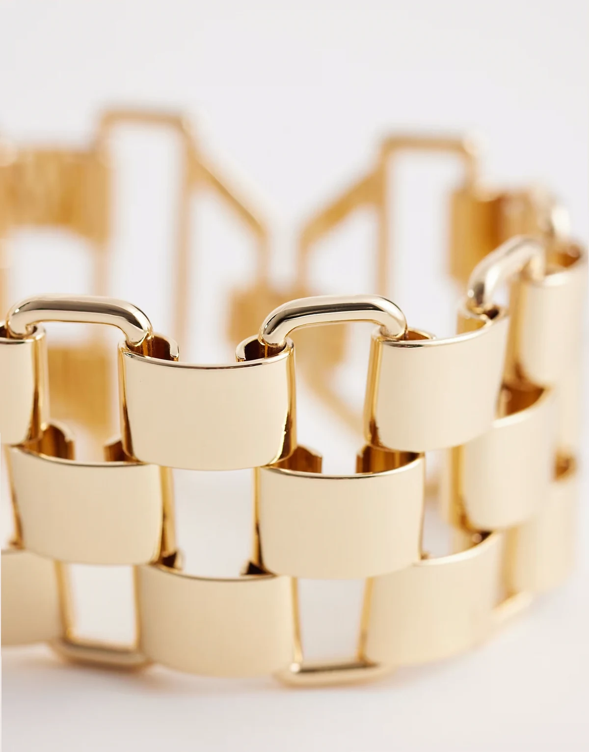 – Duża bransoletka w stylu paska do zegarka w kolorze złota