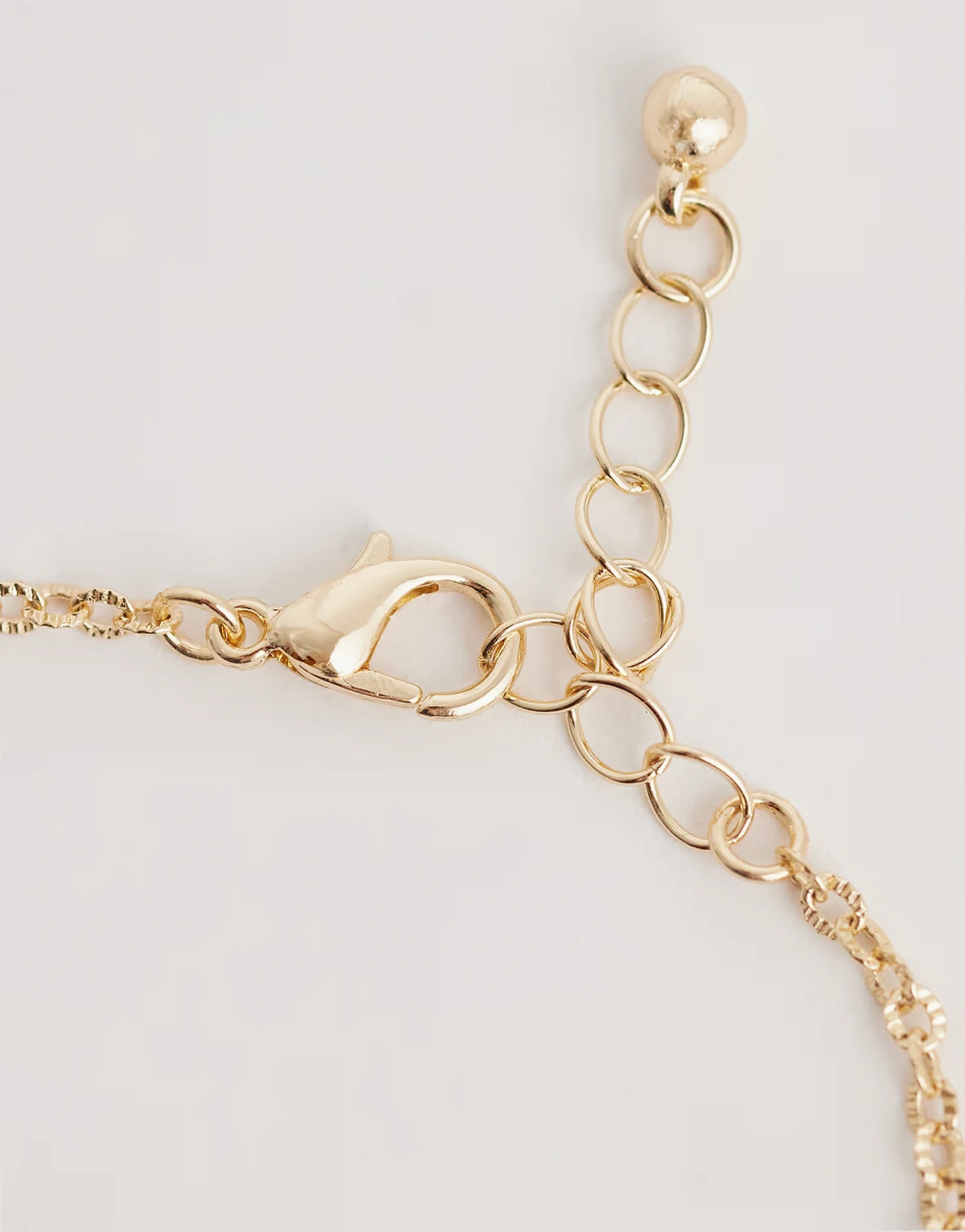 – Bransoletka łańcuszkowa w kolorze złota z różowymi kamieniami