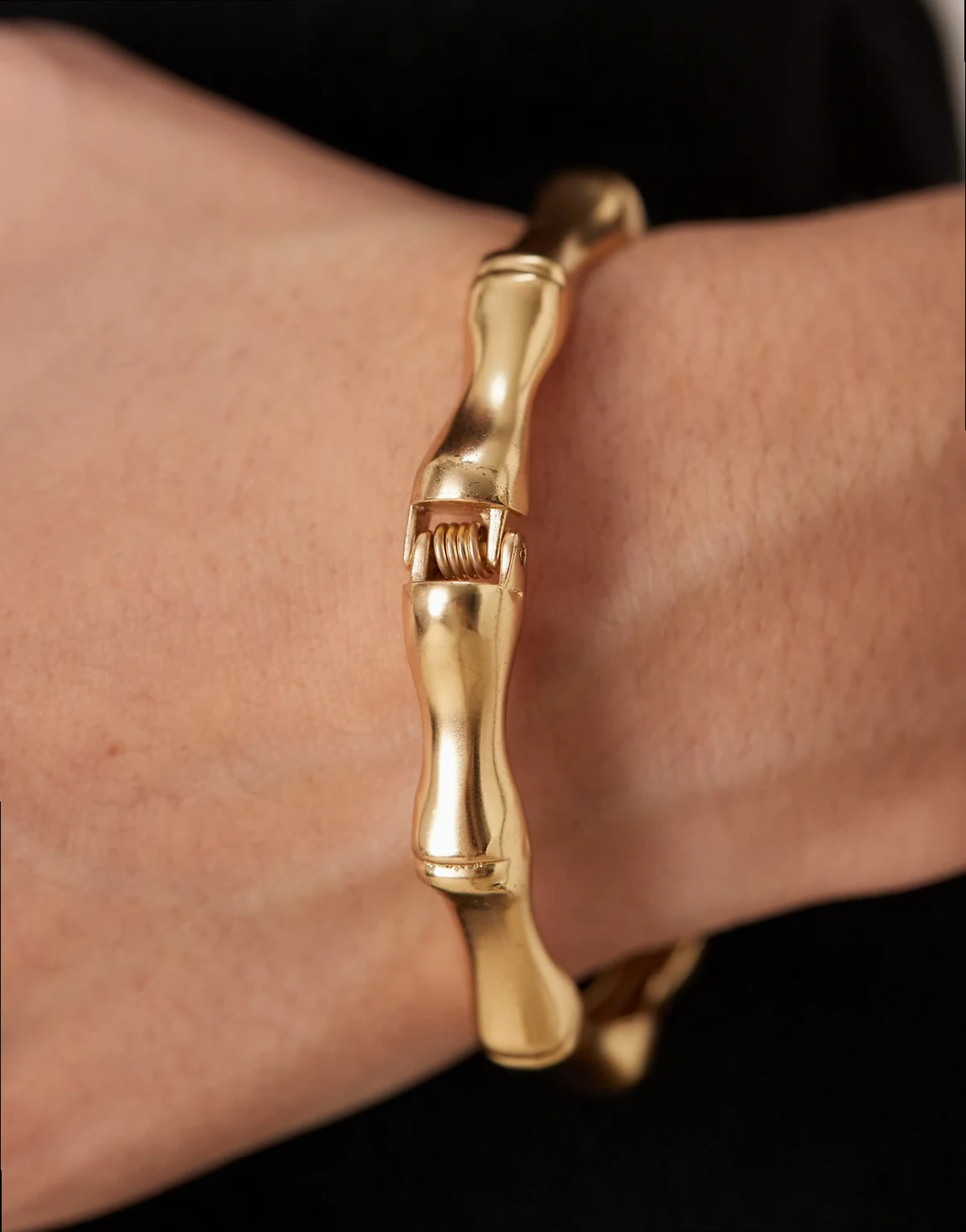 – Bransoletka przypominająca bambus w złotym kolorze z zapięciem