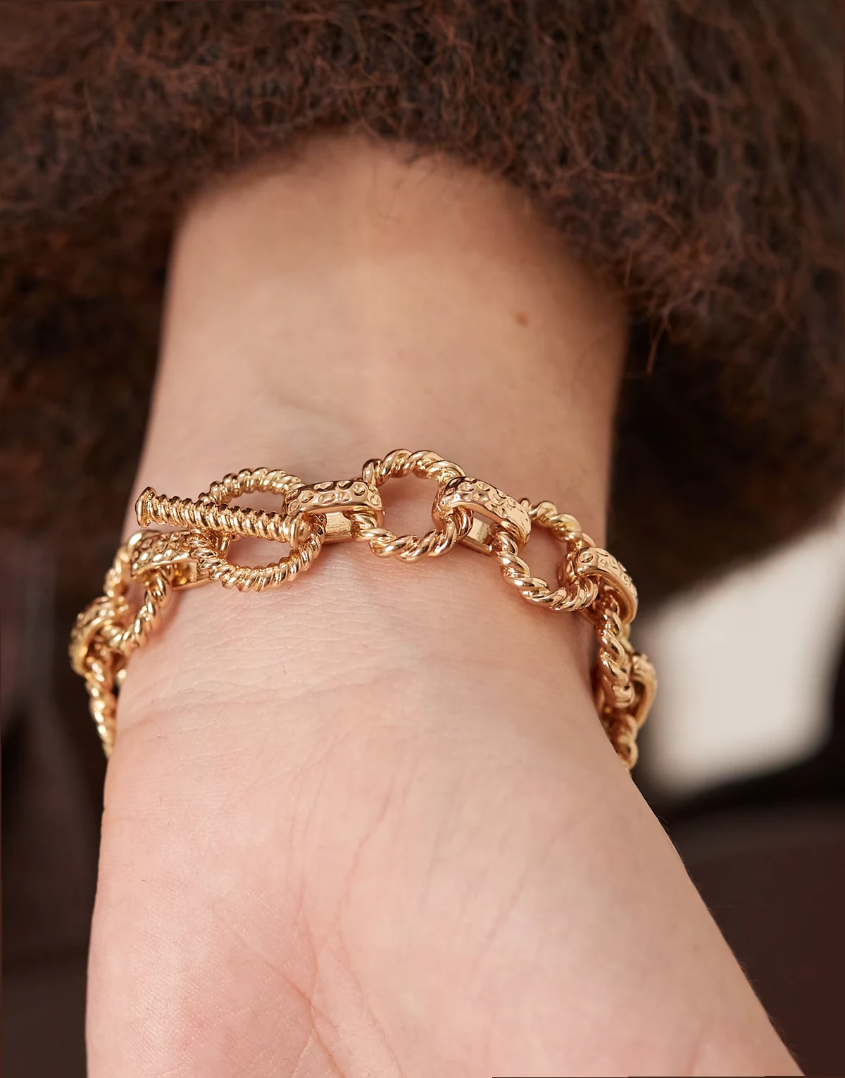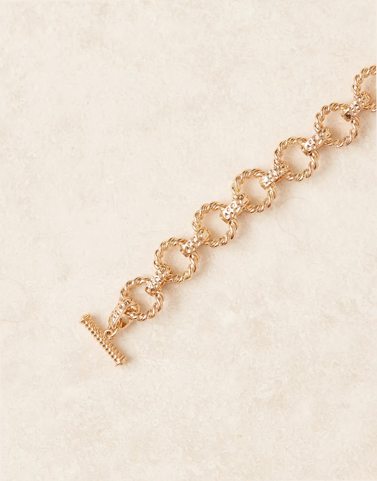 – Fakturowana bransoletka łańcuszkowa z zapięciem T