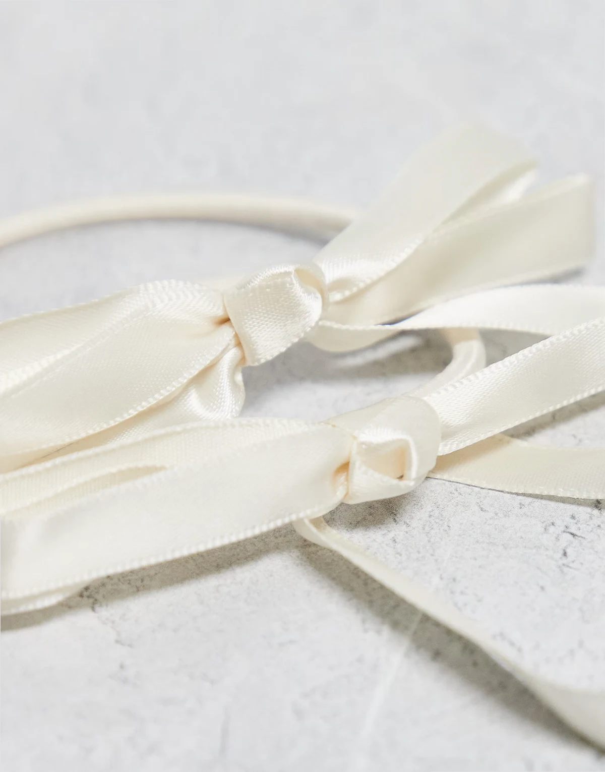 – Zestaw 2 kremowych gumek do włosów z kokardkami