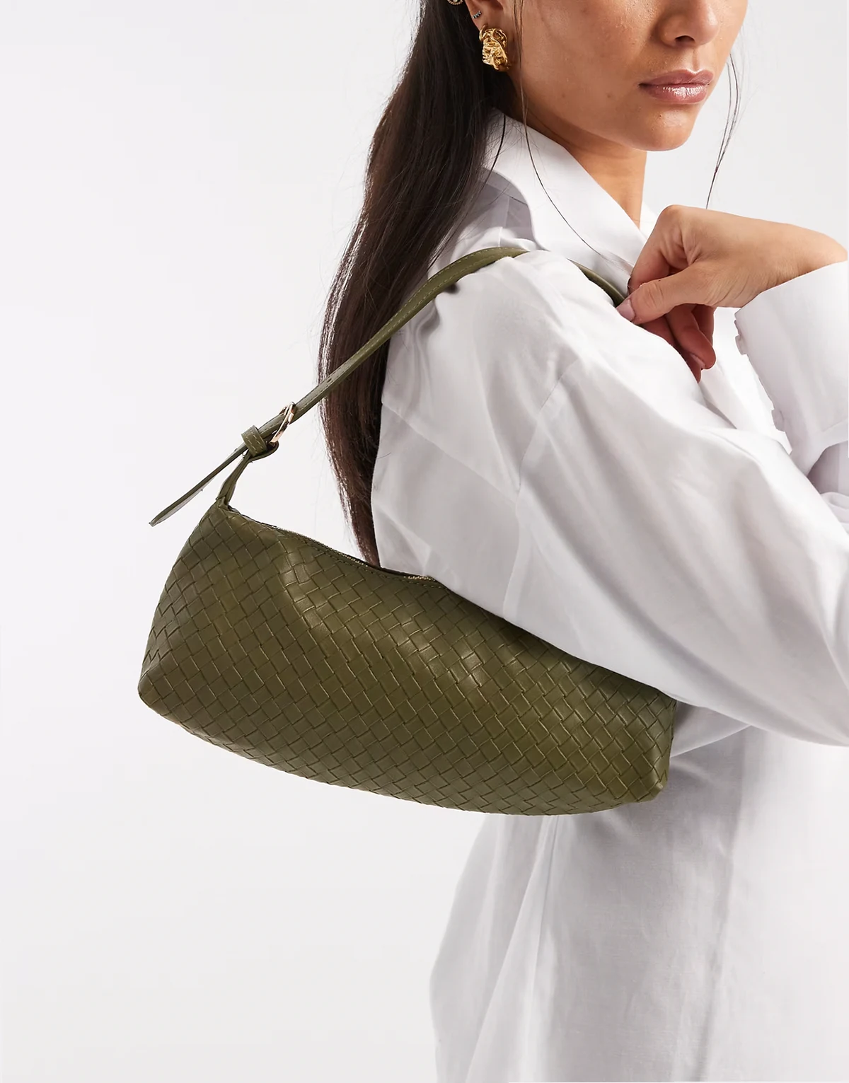 4. – Luźna zielona torebka na ramię w pleciony wzór