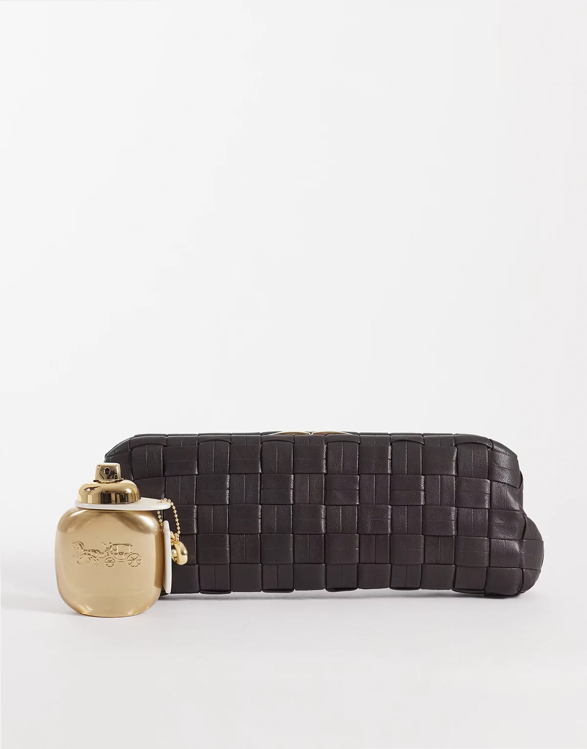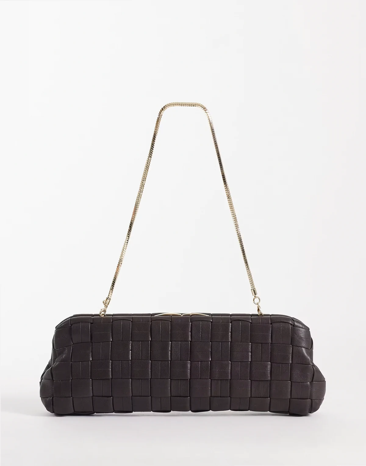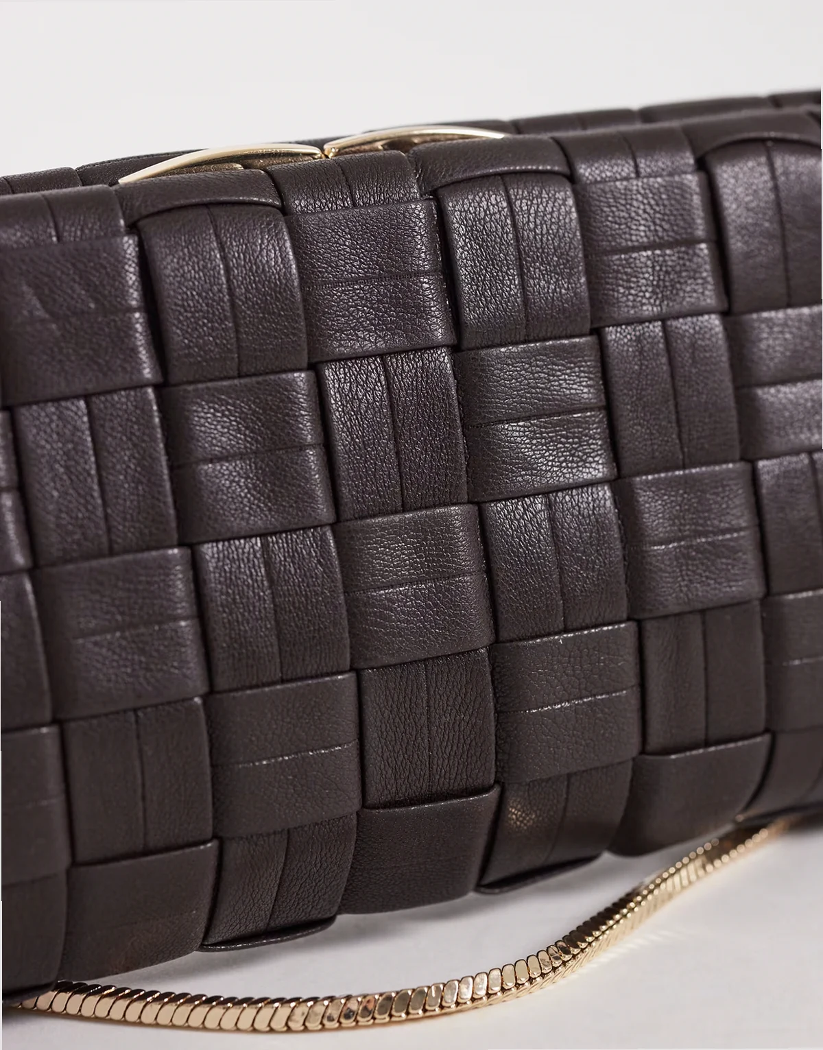 – Czekoladowa pleciona torebka z imitacji skóry