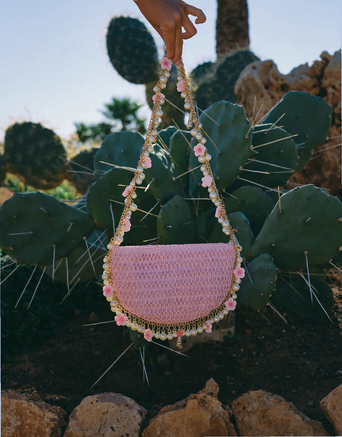 x Liv Silverman – Różowa słomkowa torebka na ramię z zawieszkami w kształcie kwiatka