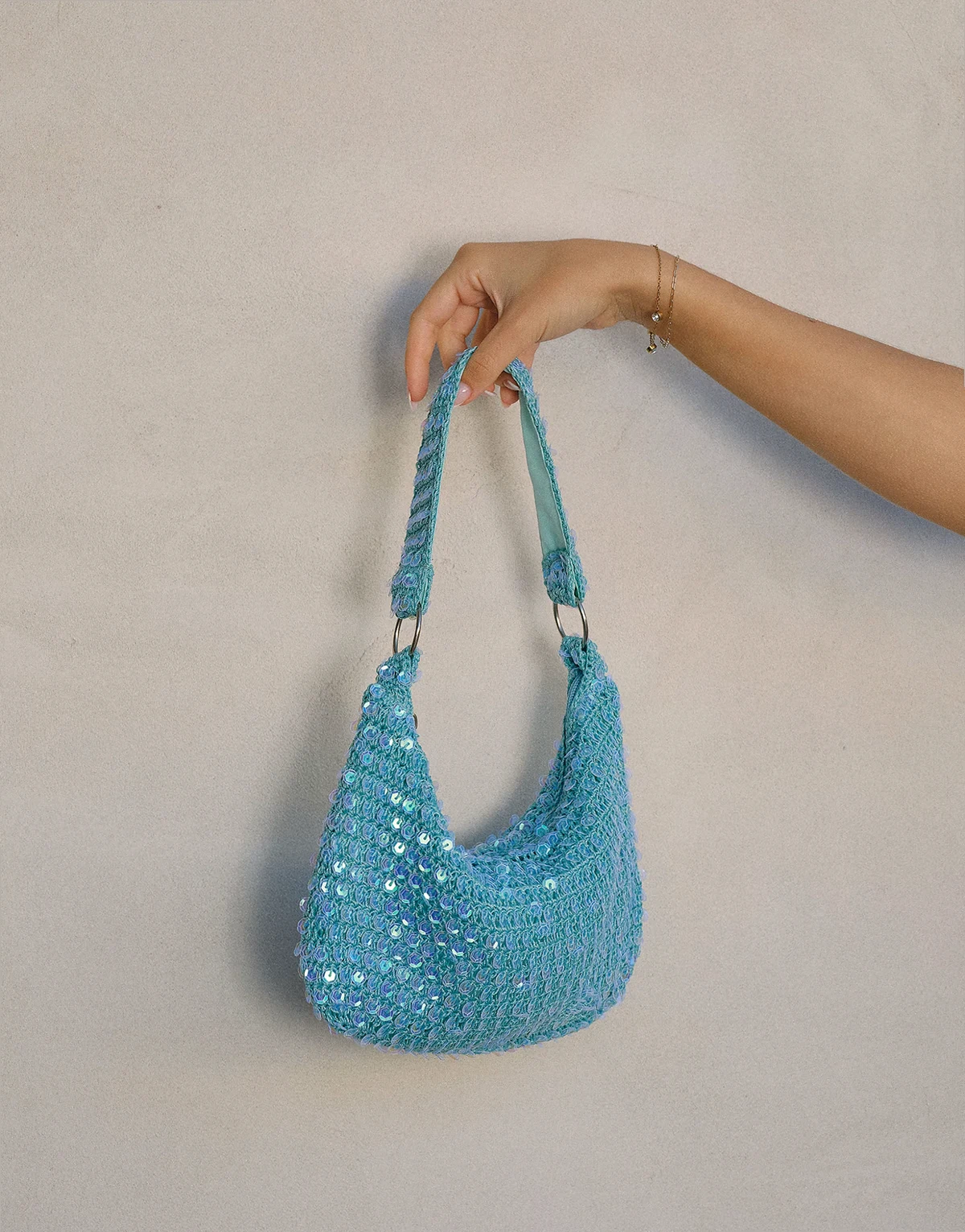 x Liv Silverman – Turkusowa torebka na ramię z cekinami