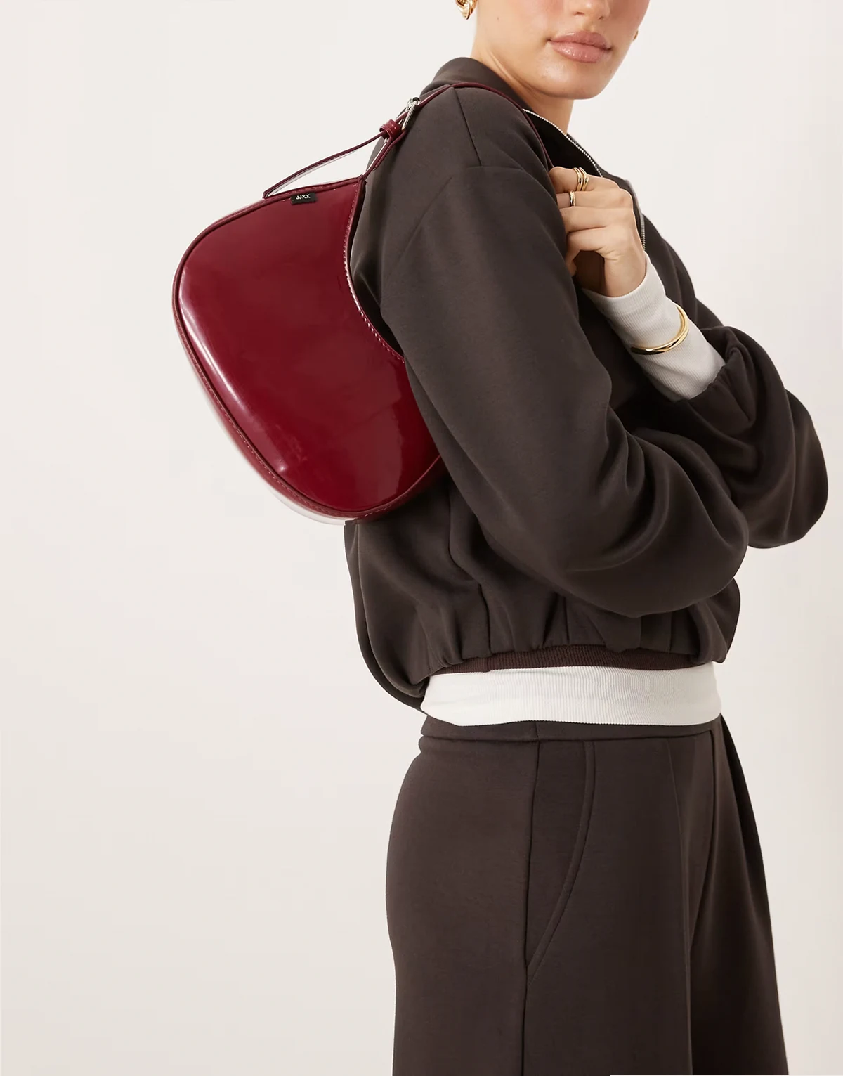– Bordowa torebka na ramię z imitacji skóry
