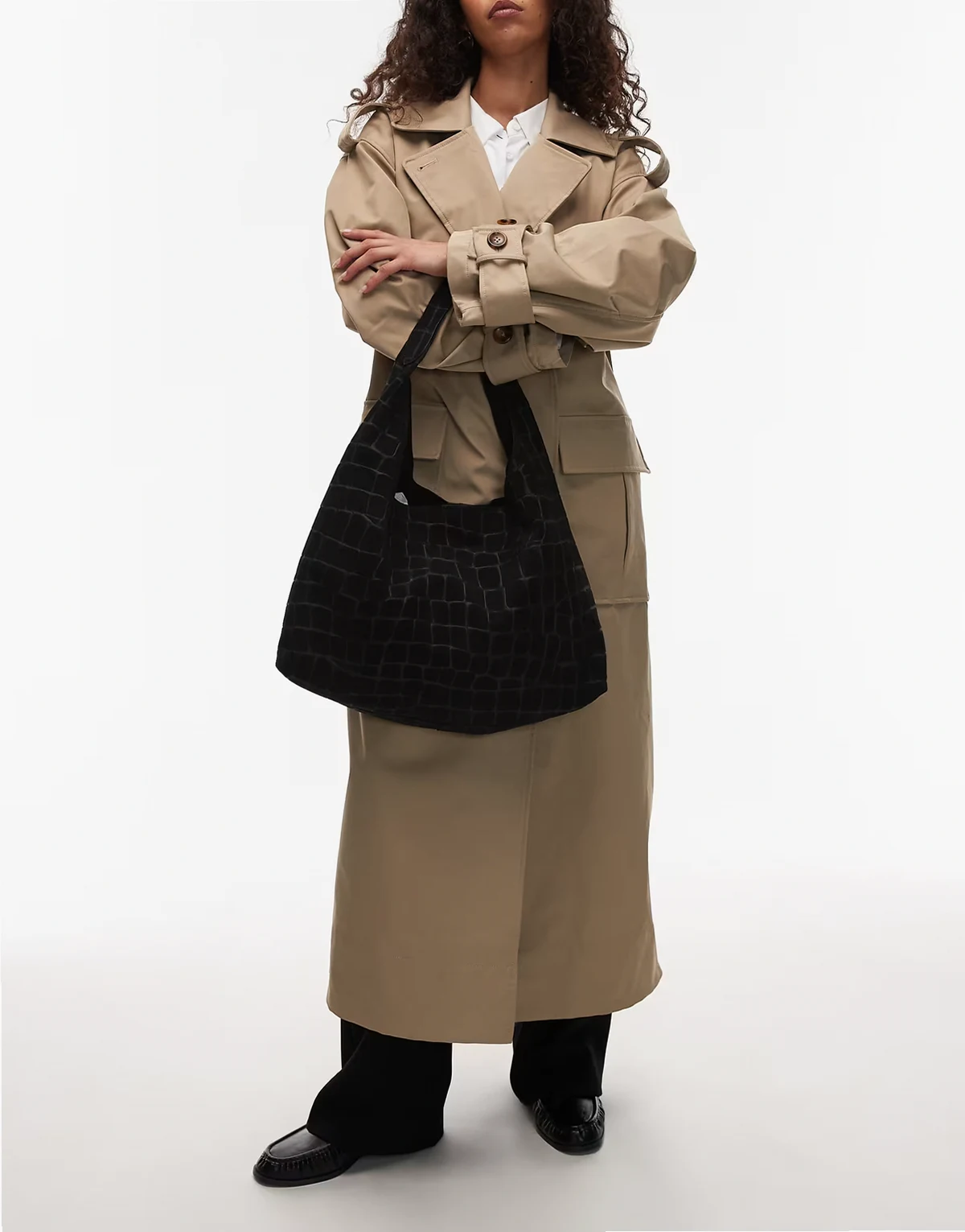 – Jasnobrązowa luźna torba typu tote z imitacji zamszu