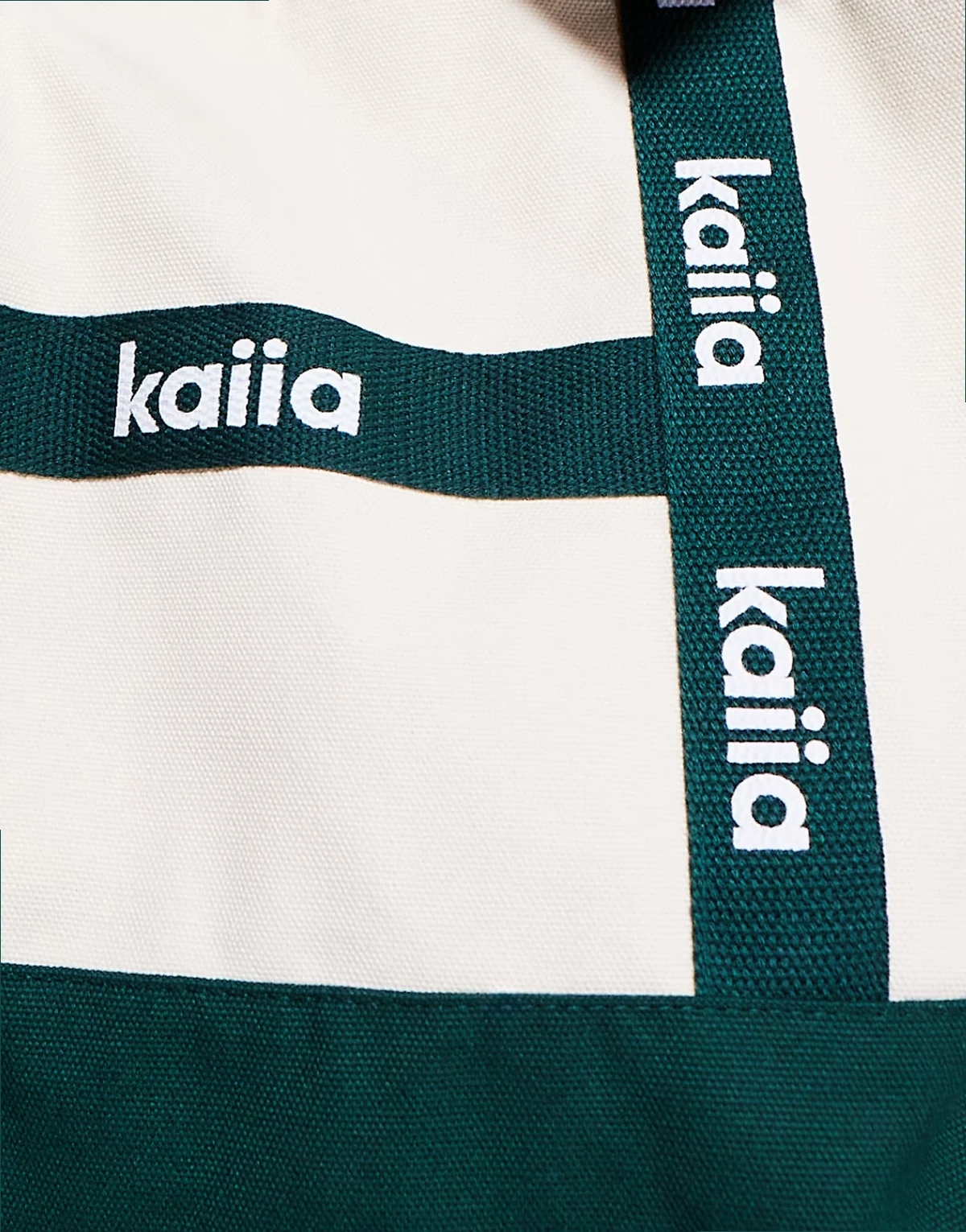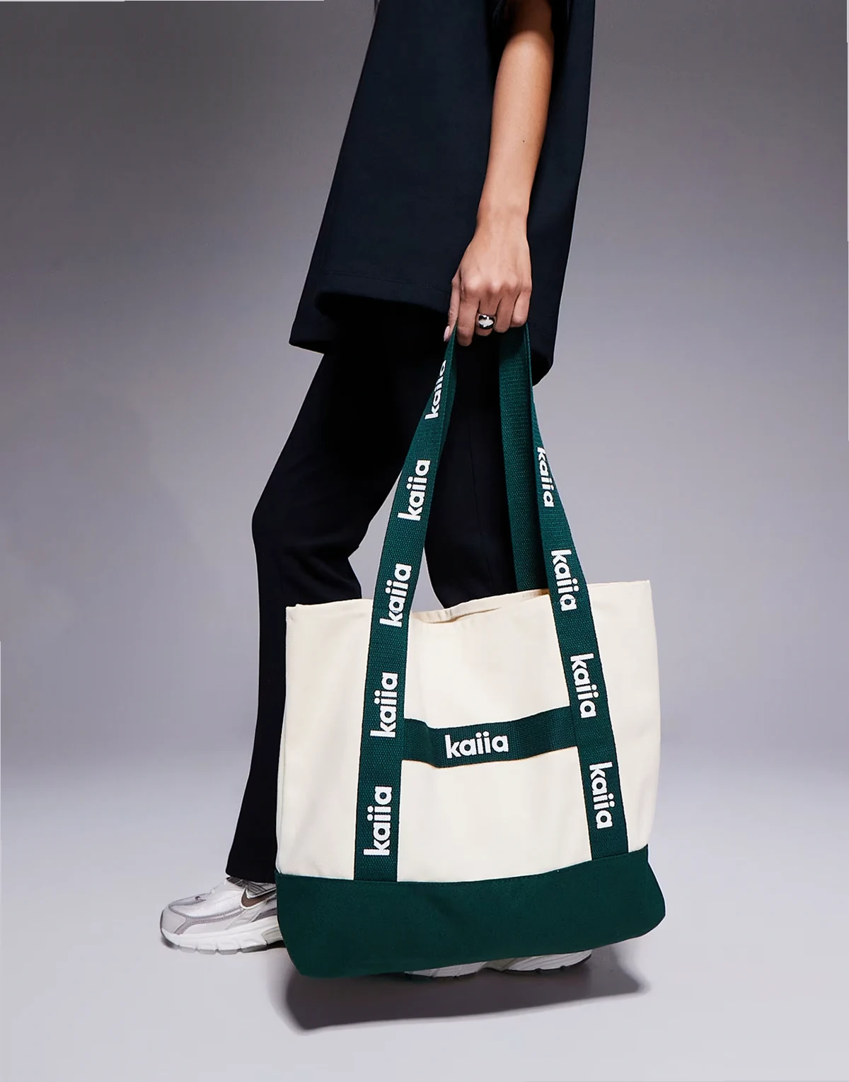 4. – Kremowo-zielona torba płócienna typu tote z logo