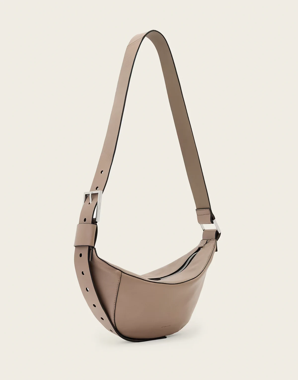 – Luna – Skórzana torebka crossbody w kształcie półksiężyca w kolorze kawy z mlekiem