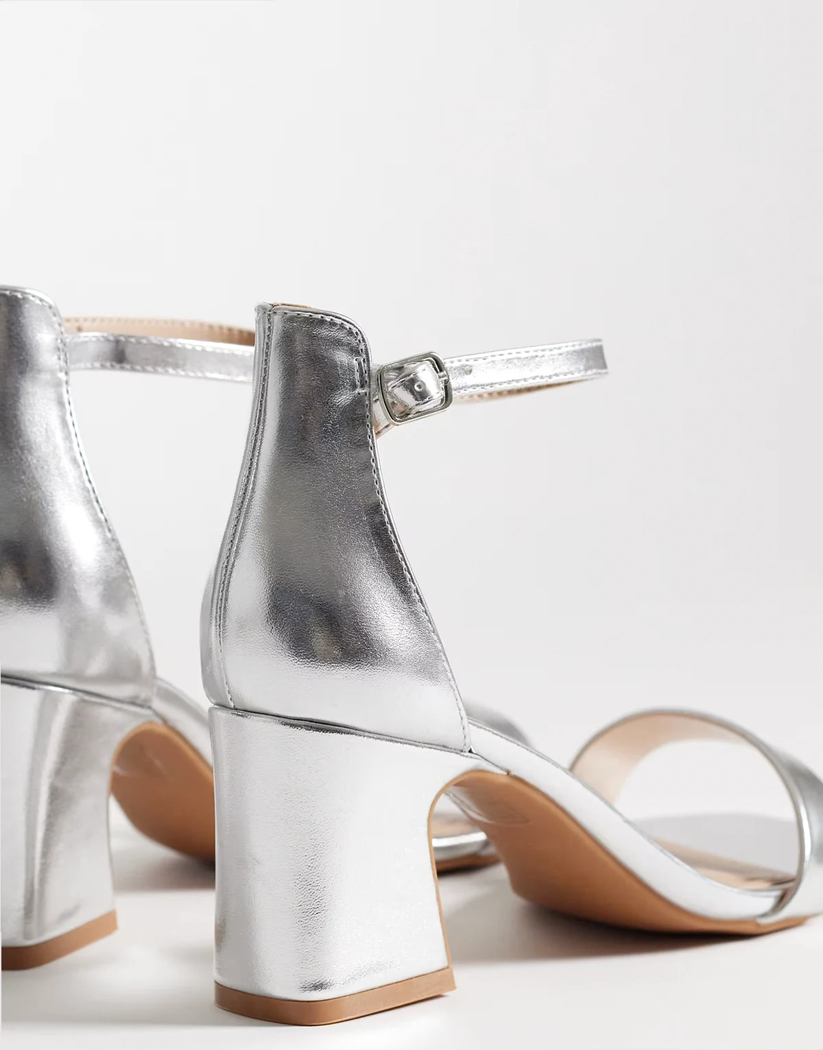 – Leal – Srebrne sandały na obcasie klockowym