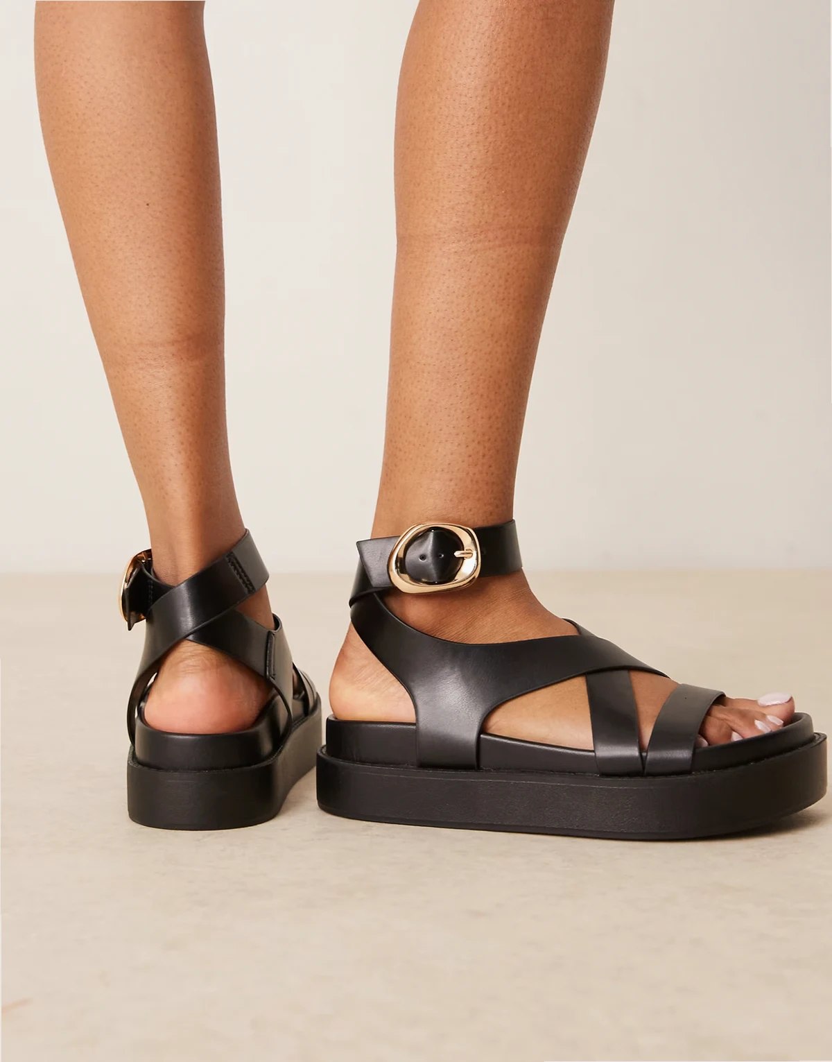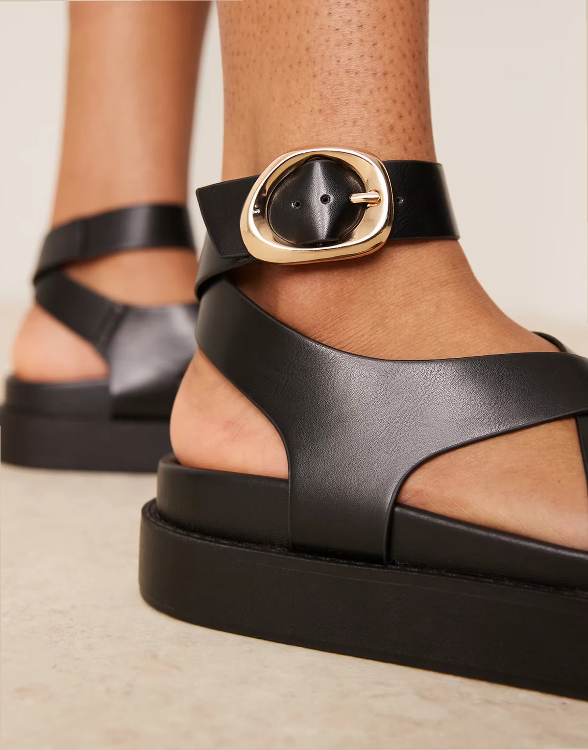 – Farrah – Czarne sandały ze skrzyżowanymi paskami i wkładką