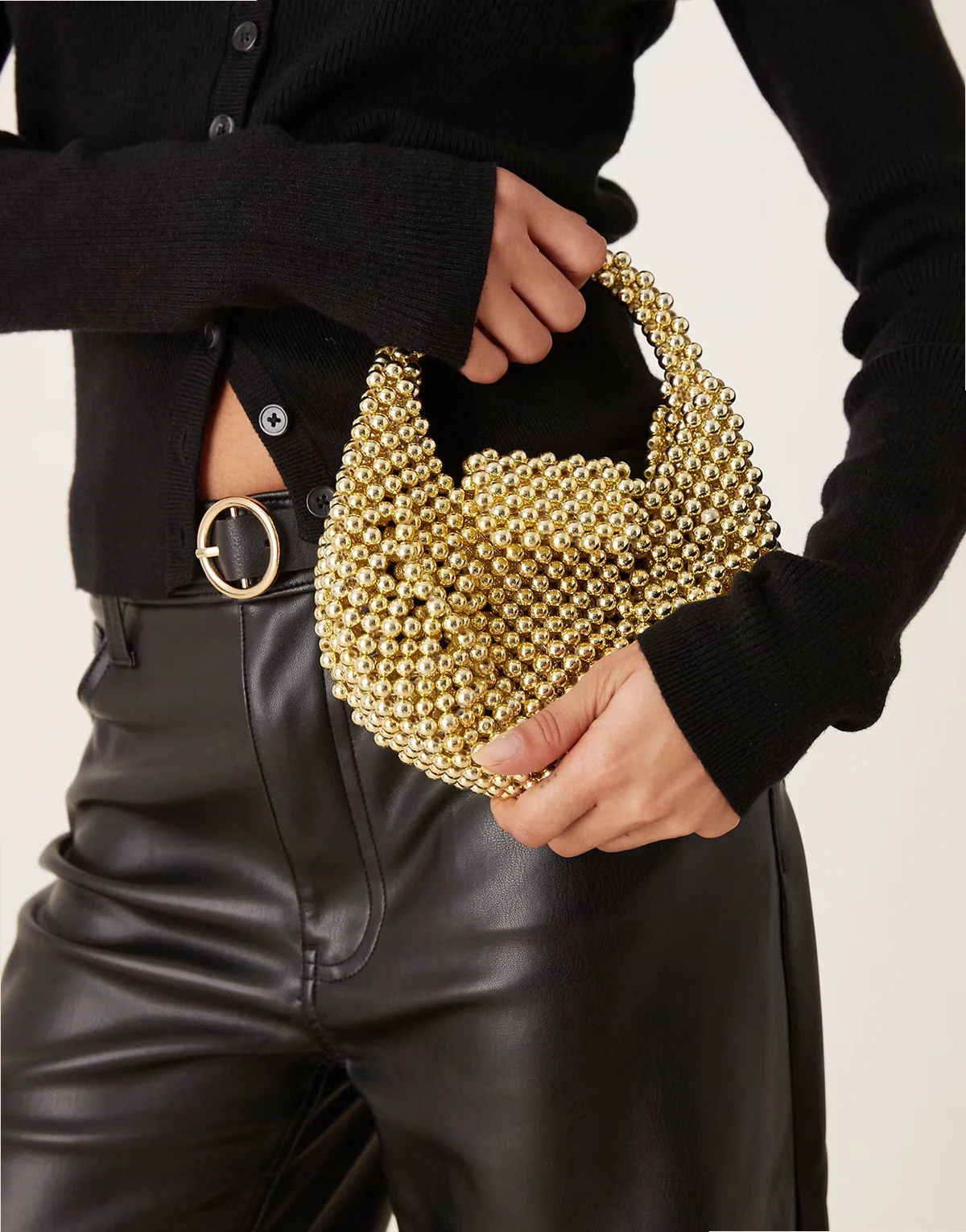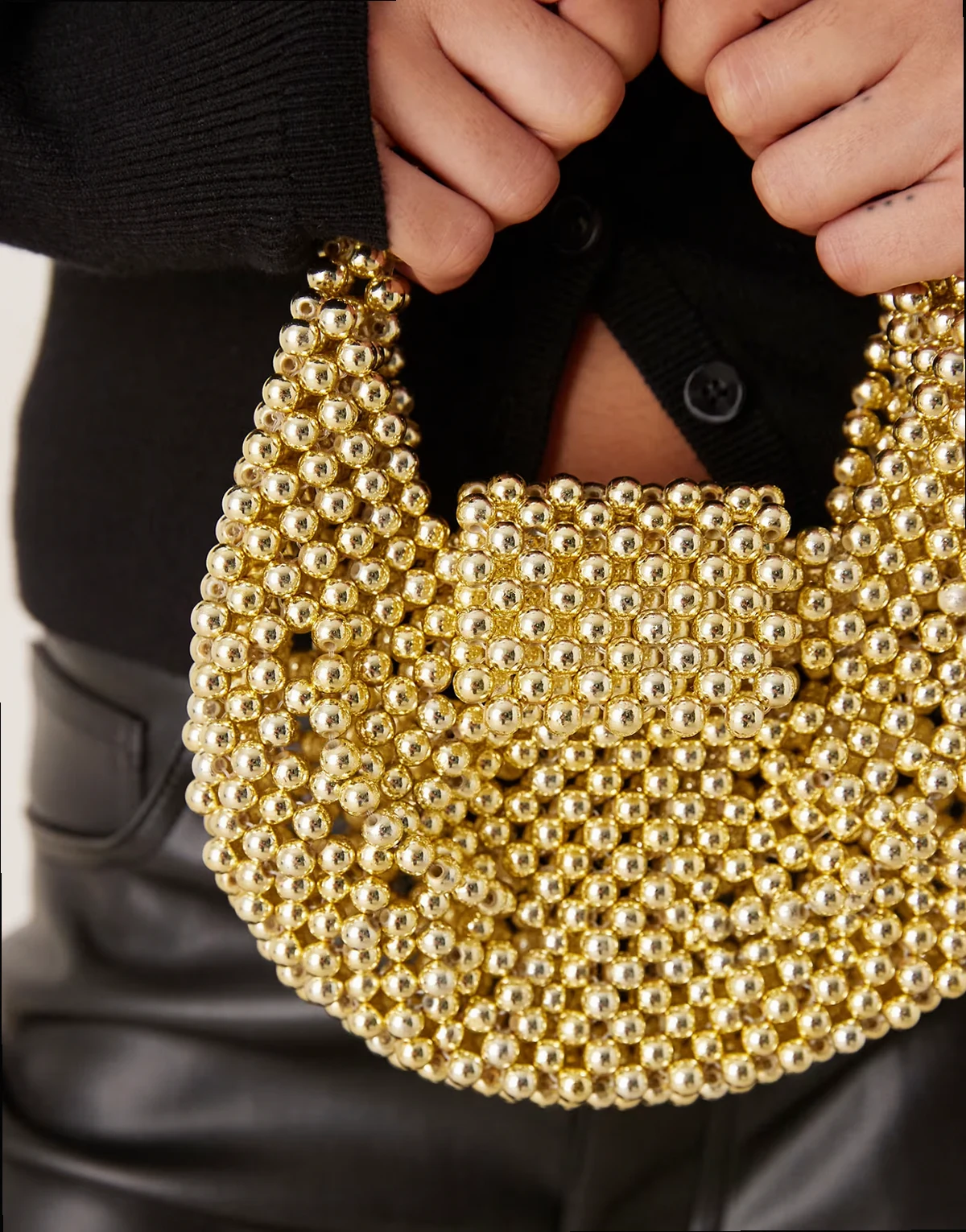 – Złota torebka z koralików