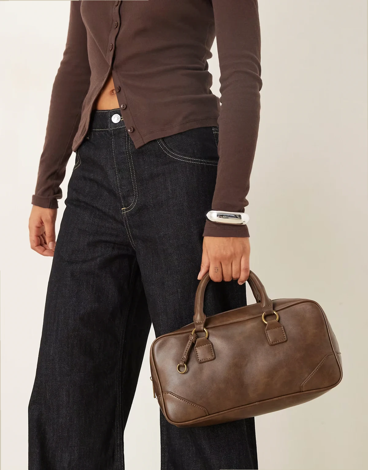 – Griffith – Czarna torebka do ręki z okrągłymi metalowymi uchwytami