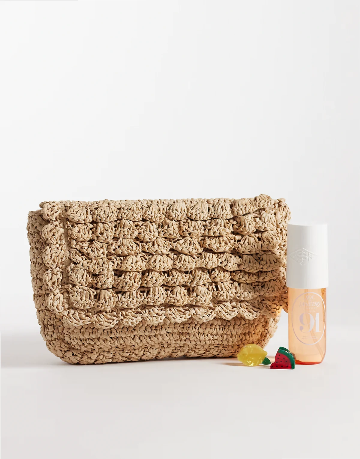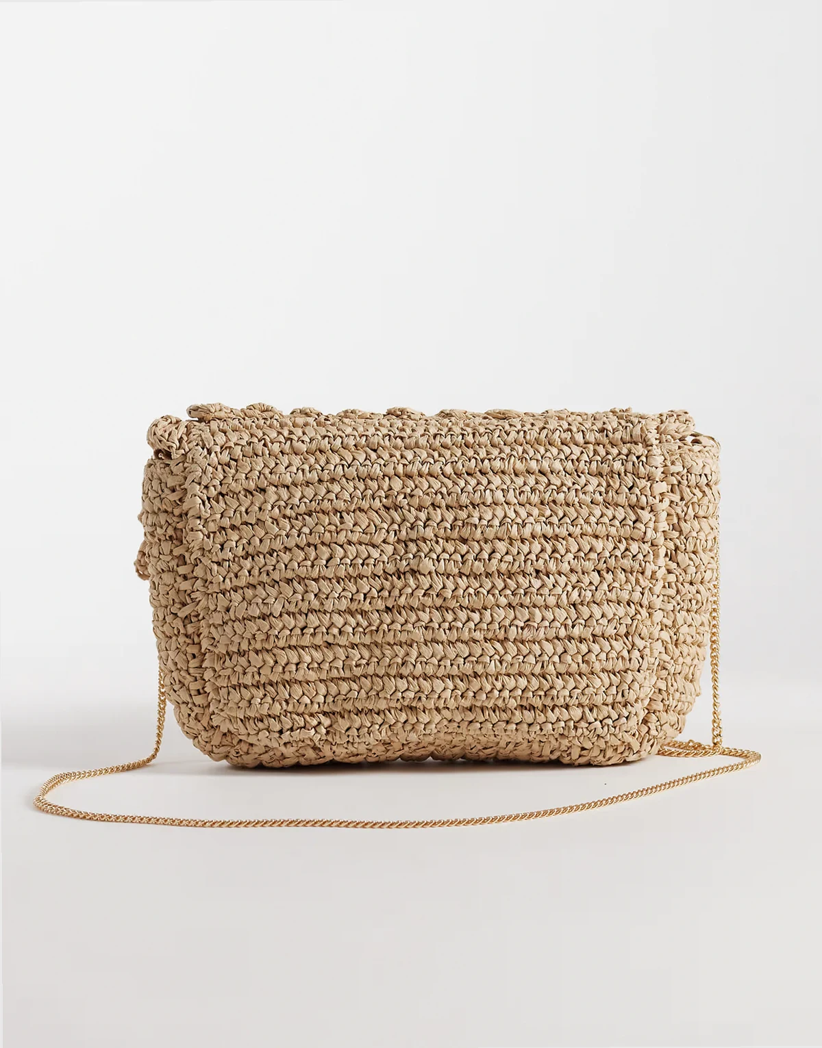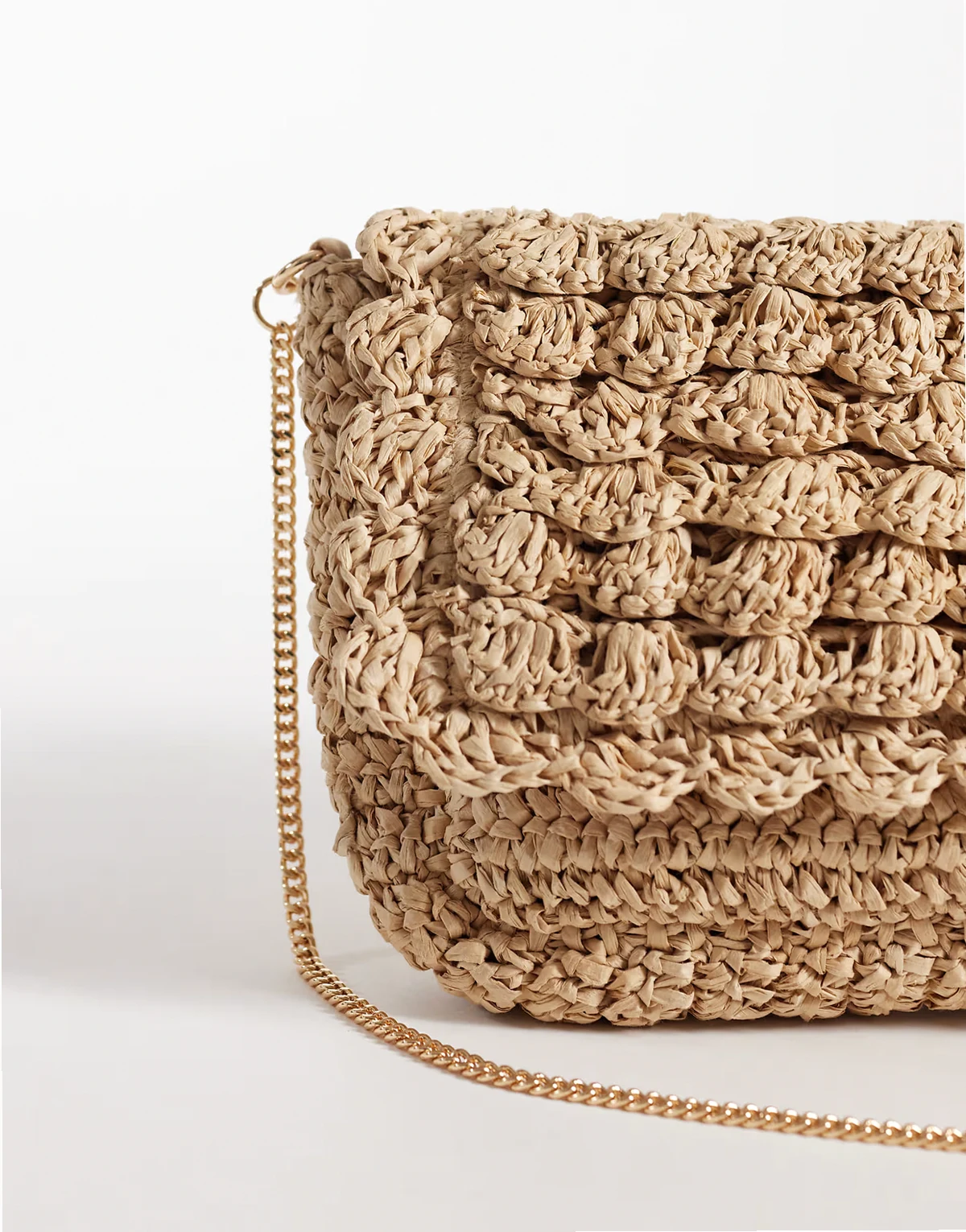 – Fakturowana kopertówka na ramię ze słomianej rafii w neutralnym kolorze