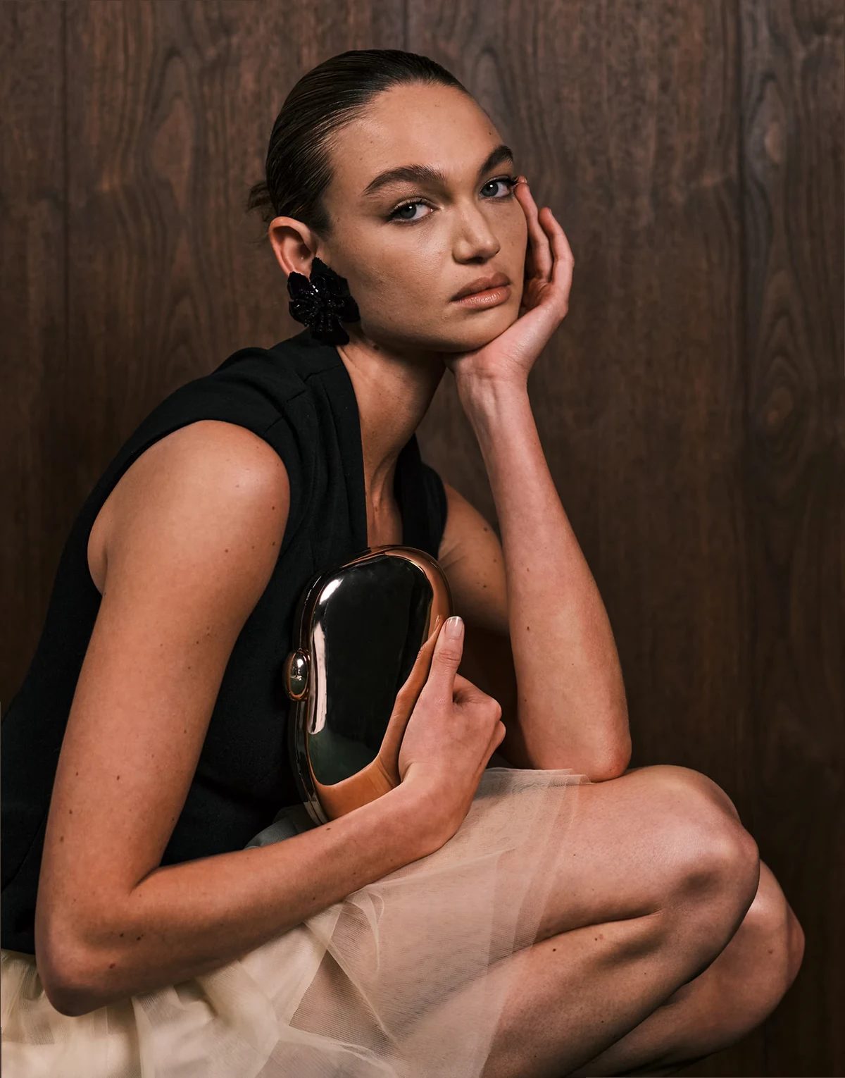 – Griffith – Czarna torebka do ręki z okrągłymi metalowymi uchwytami
