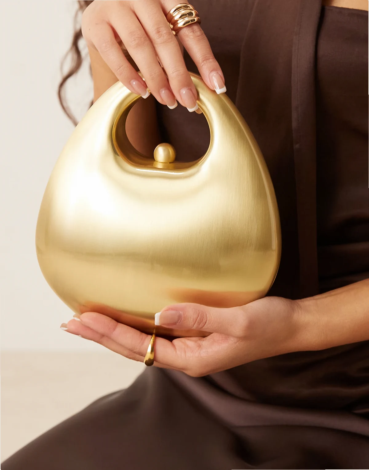 – Sztywna kopertówka z rączką w kolorze szczotkowanego złota