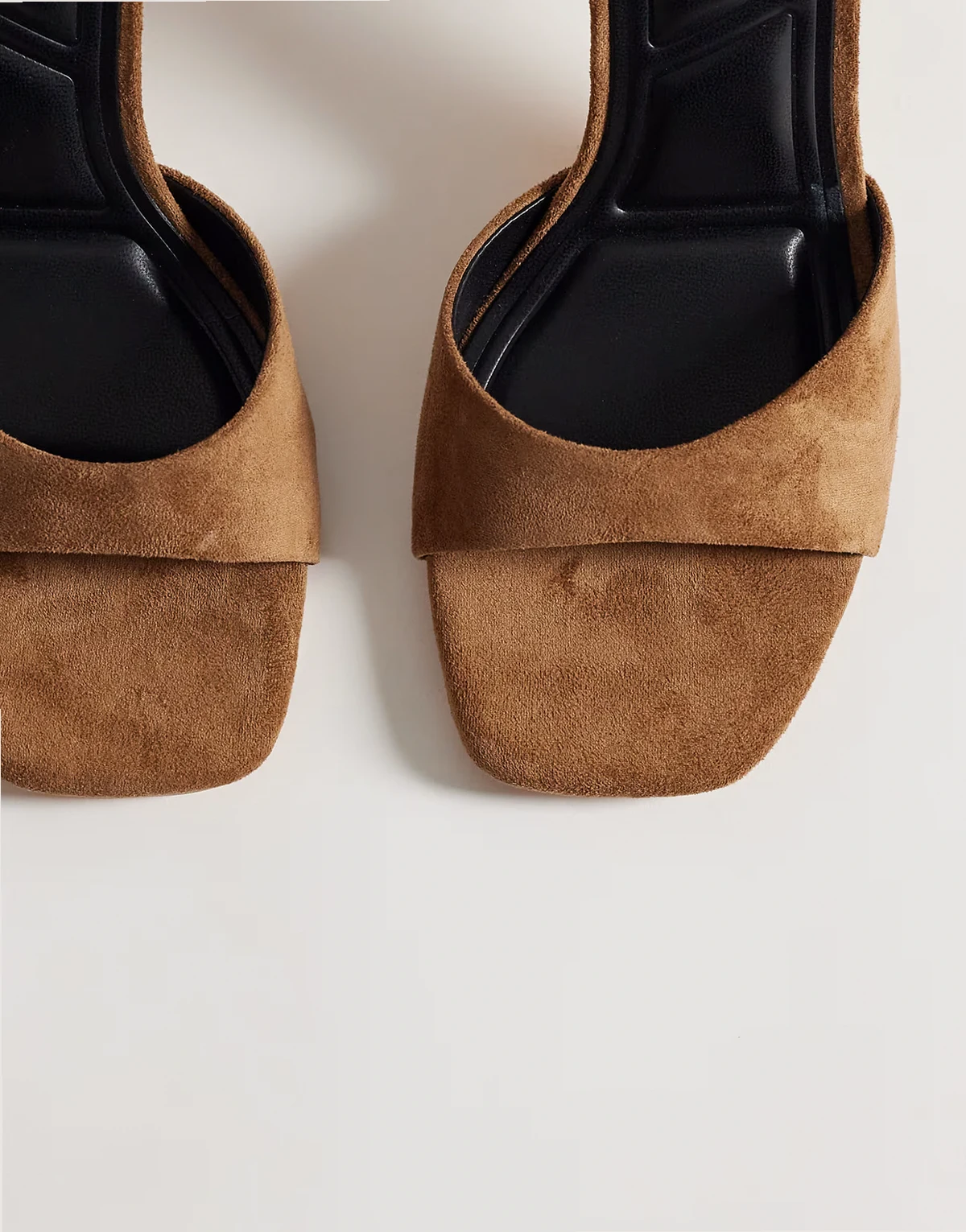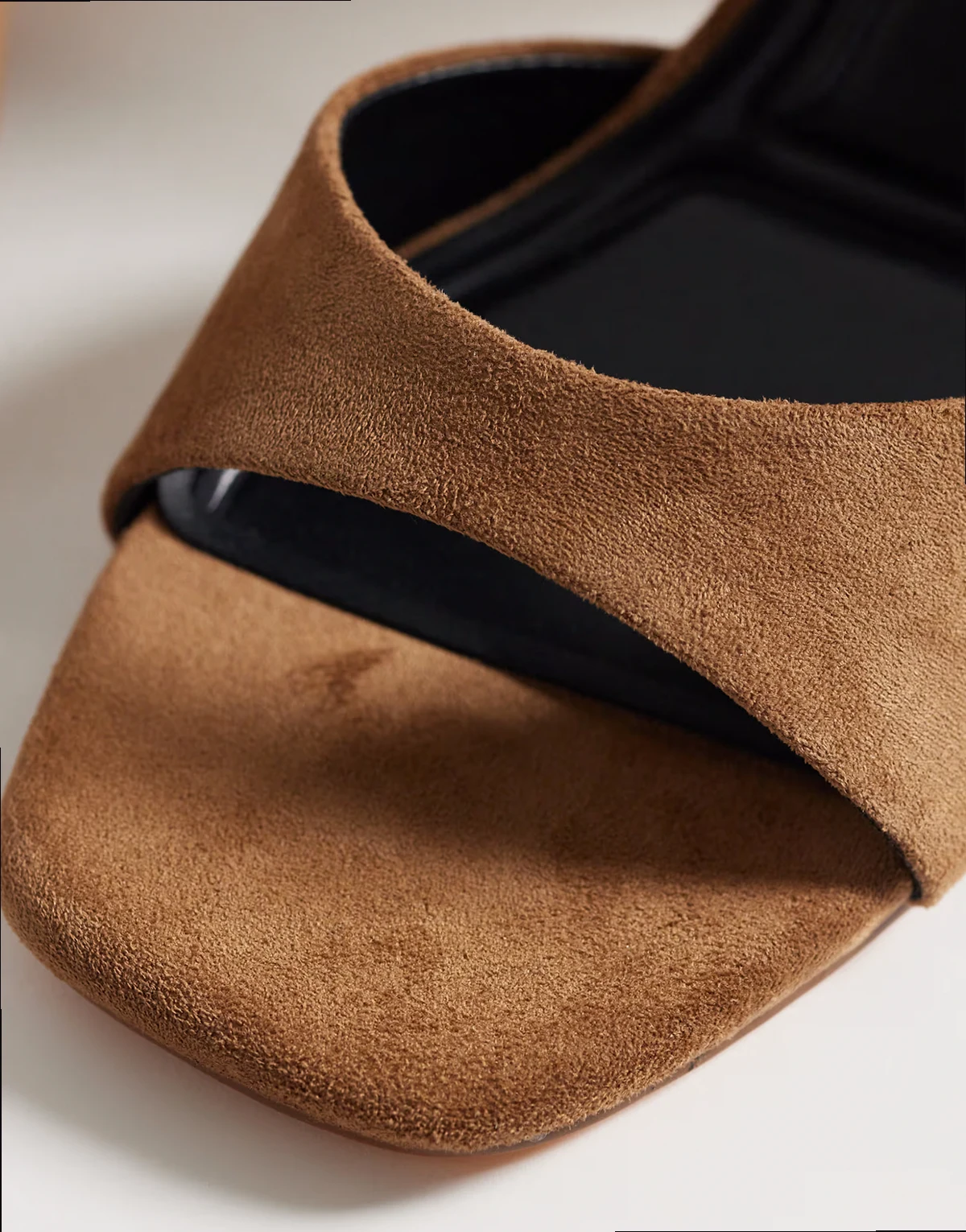 – Hush – Czekoladowe skórzane mule na średnim obcasie