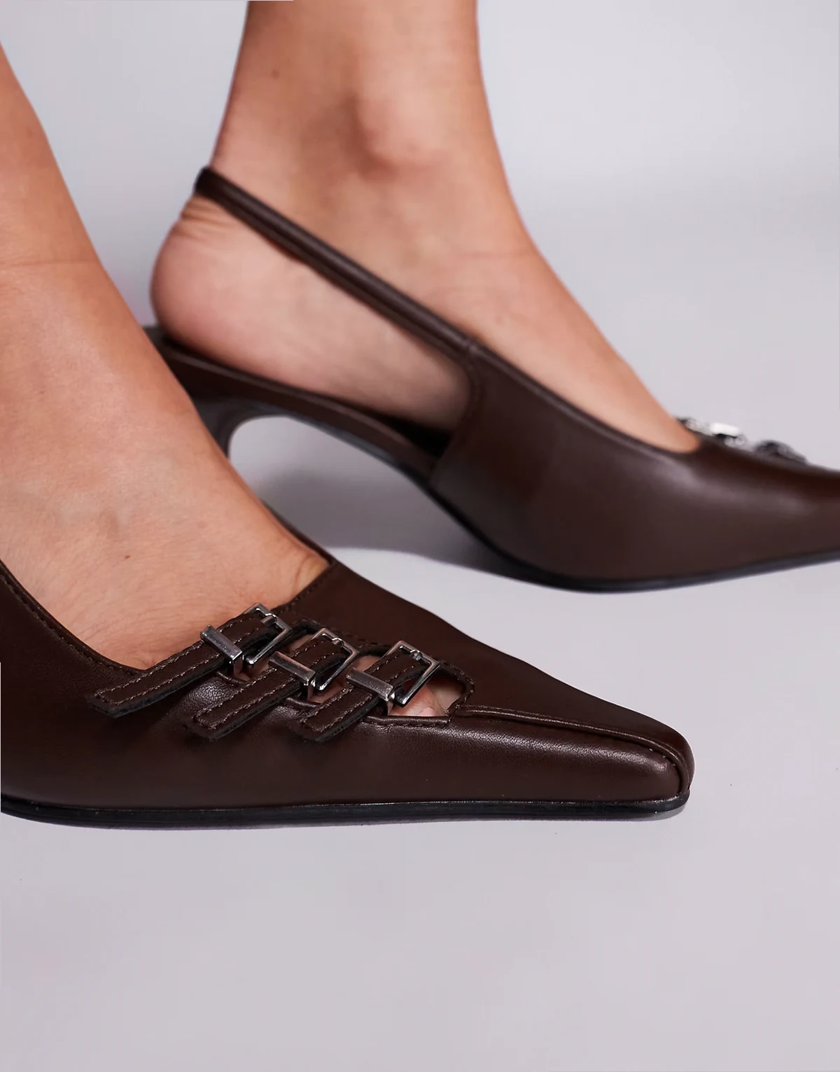 – Devoted – Brązowe buty na obcasie z paskami za piętą i klamrami
