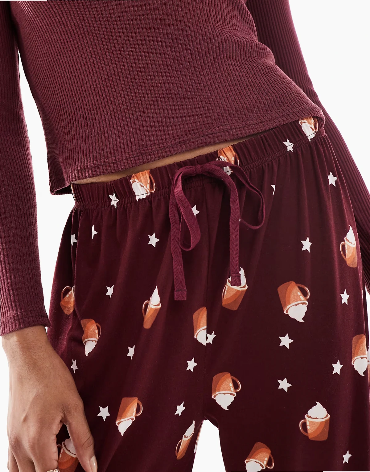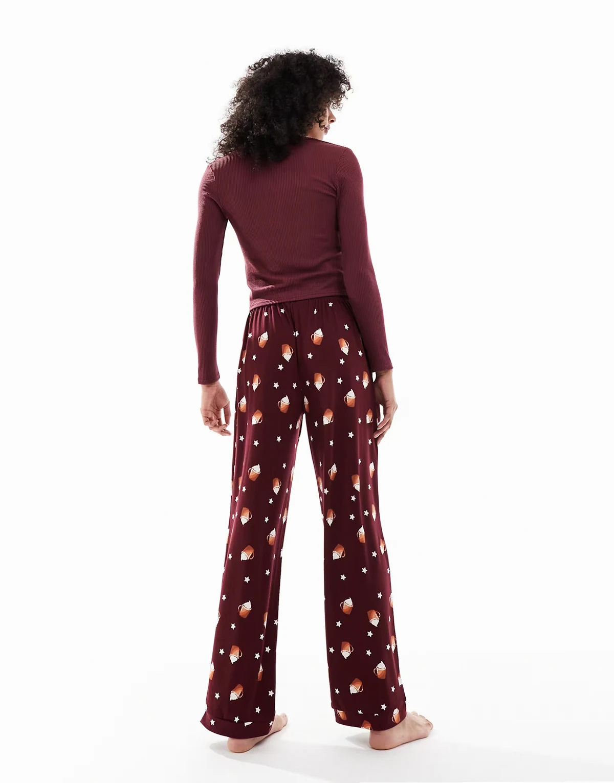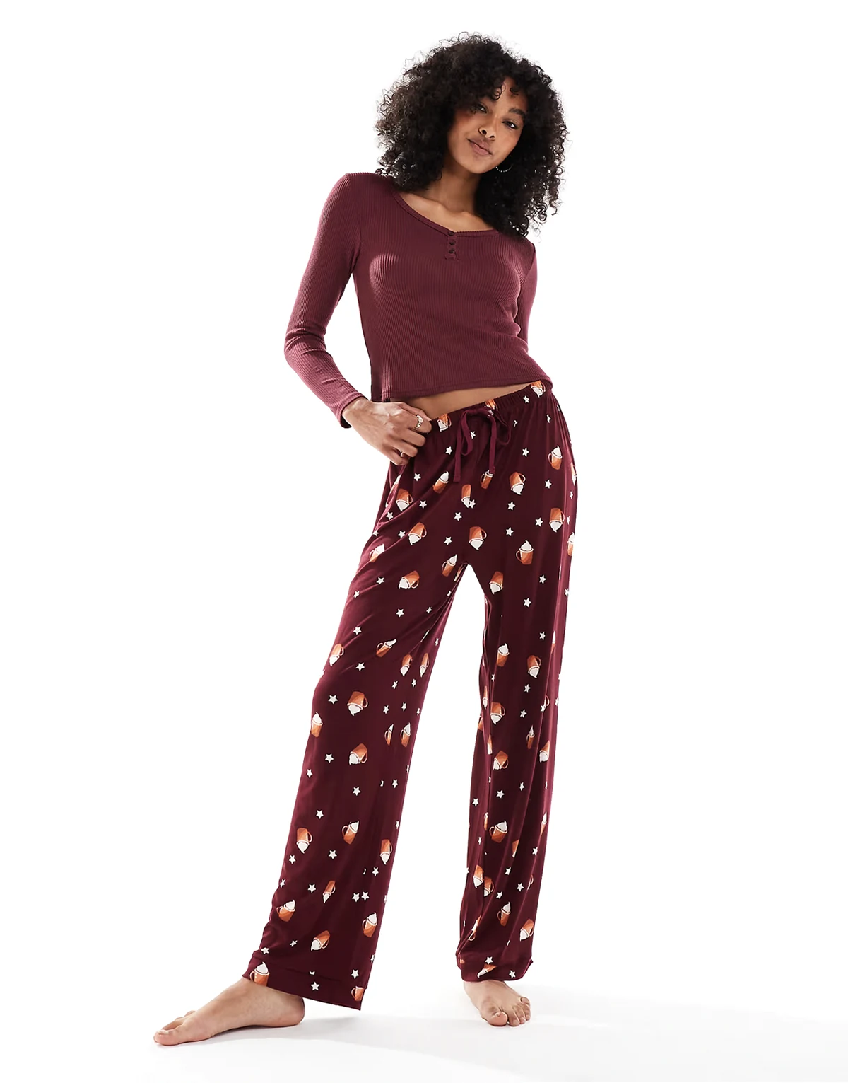 – Piżama z topem henley i spodniami z nadrukiem spice latte
