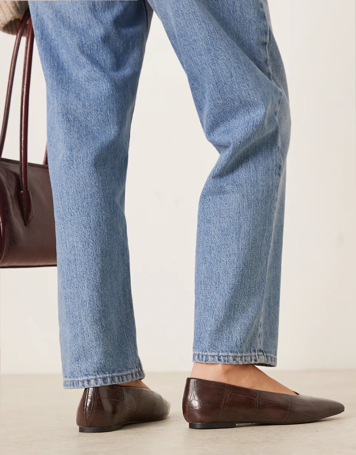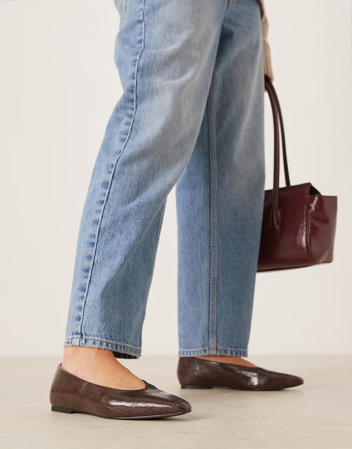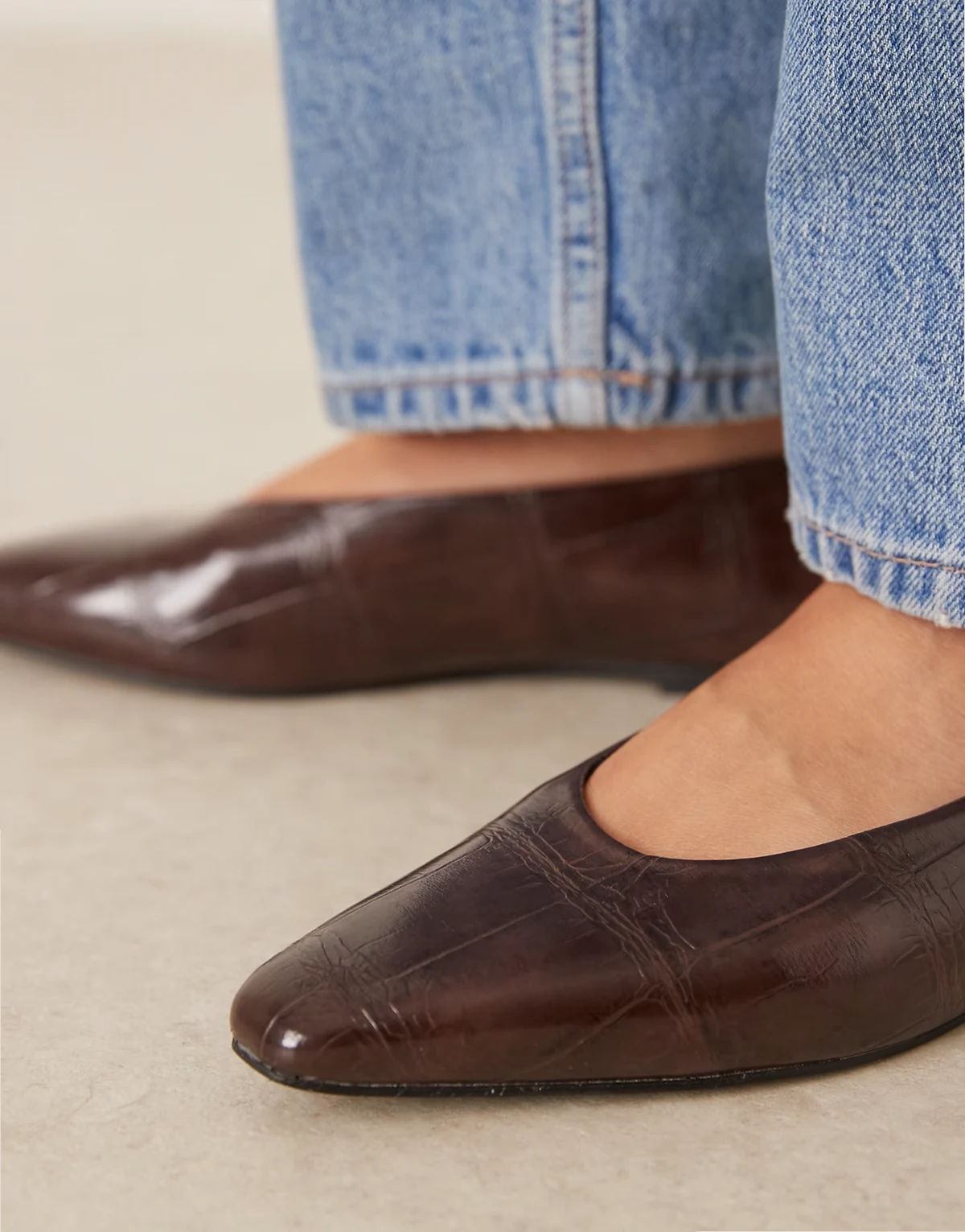 – Lambert – Brązowe balerinki ze skośnymi noskami z imitacji skóry krokodyla