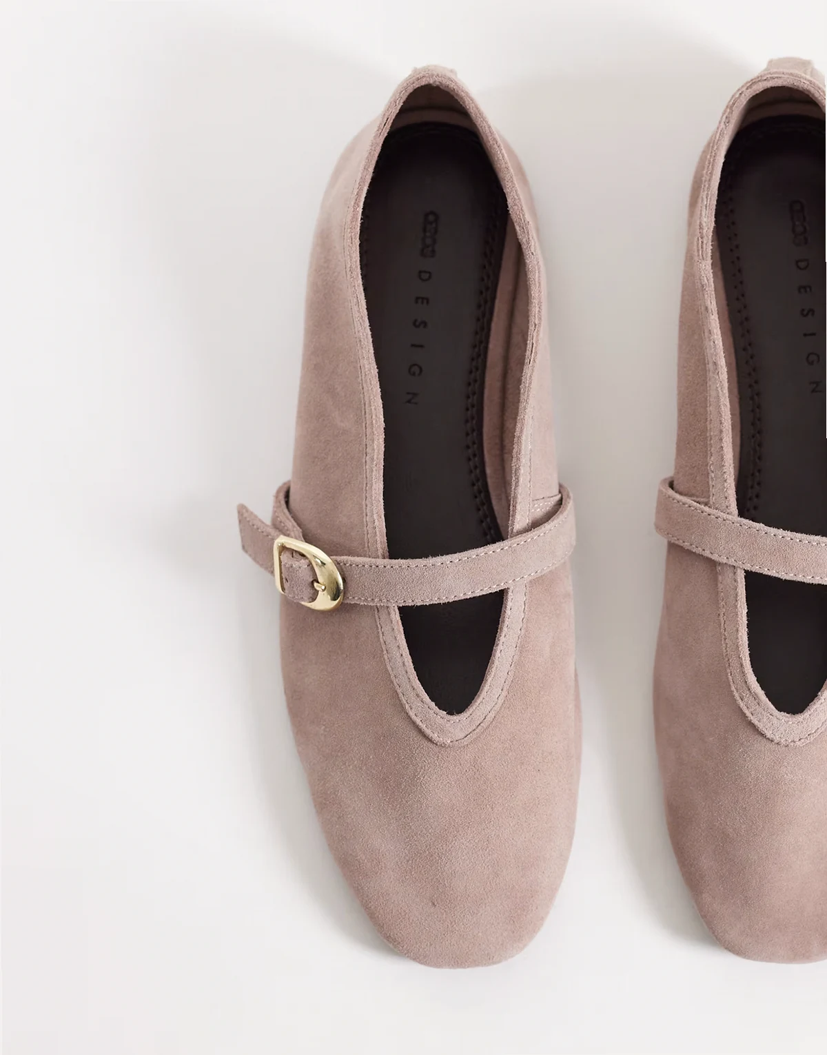 Premium – Lively – Pudroworóżowe zamszowe balerinki typu Mary Jane