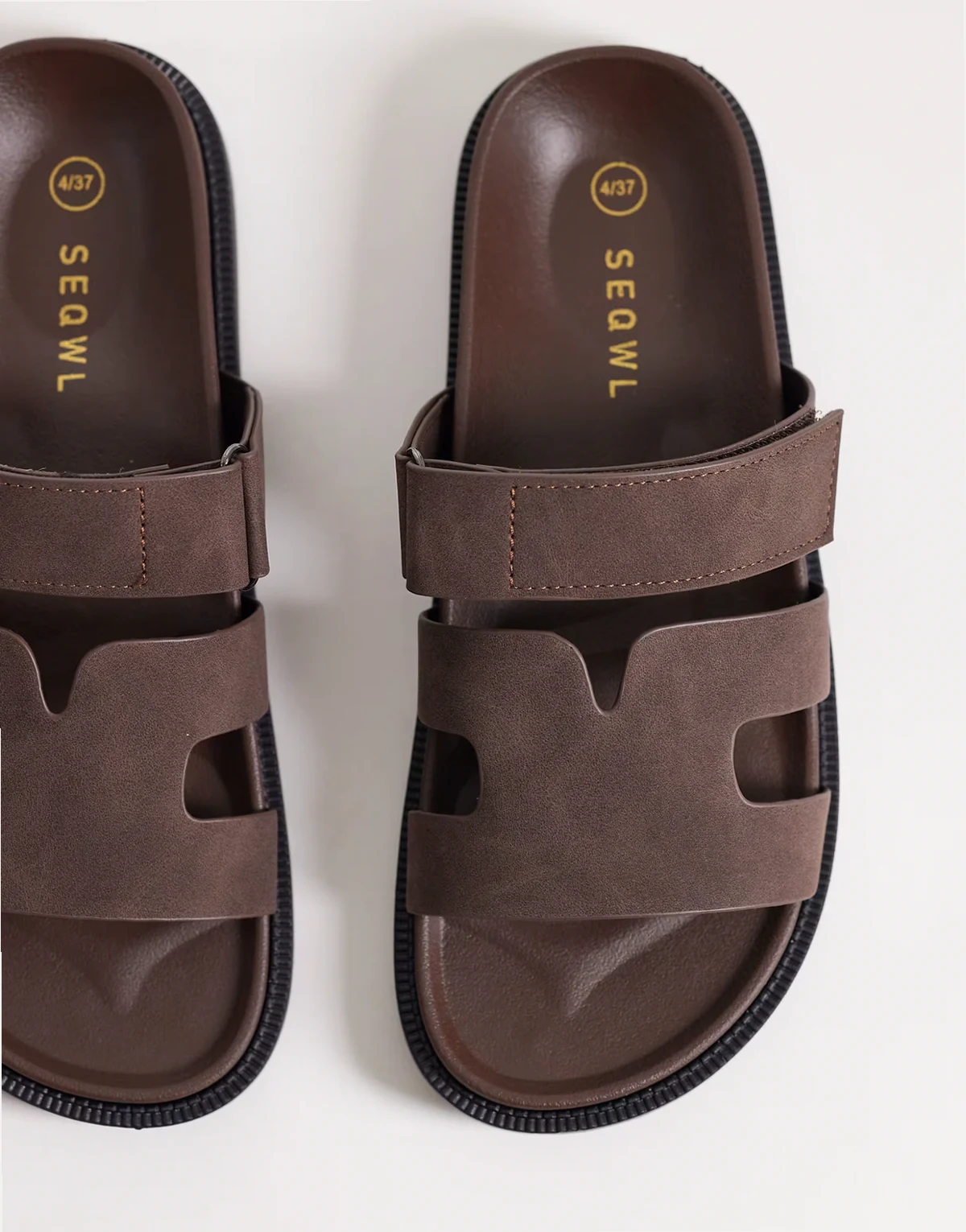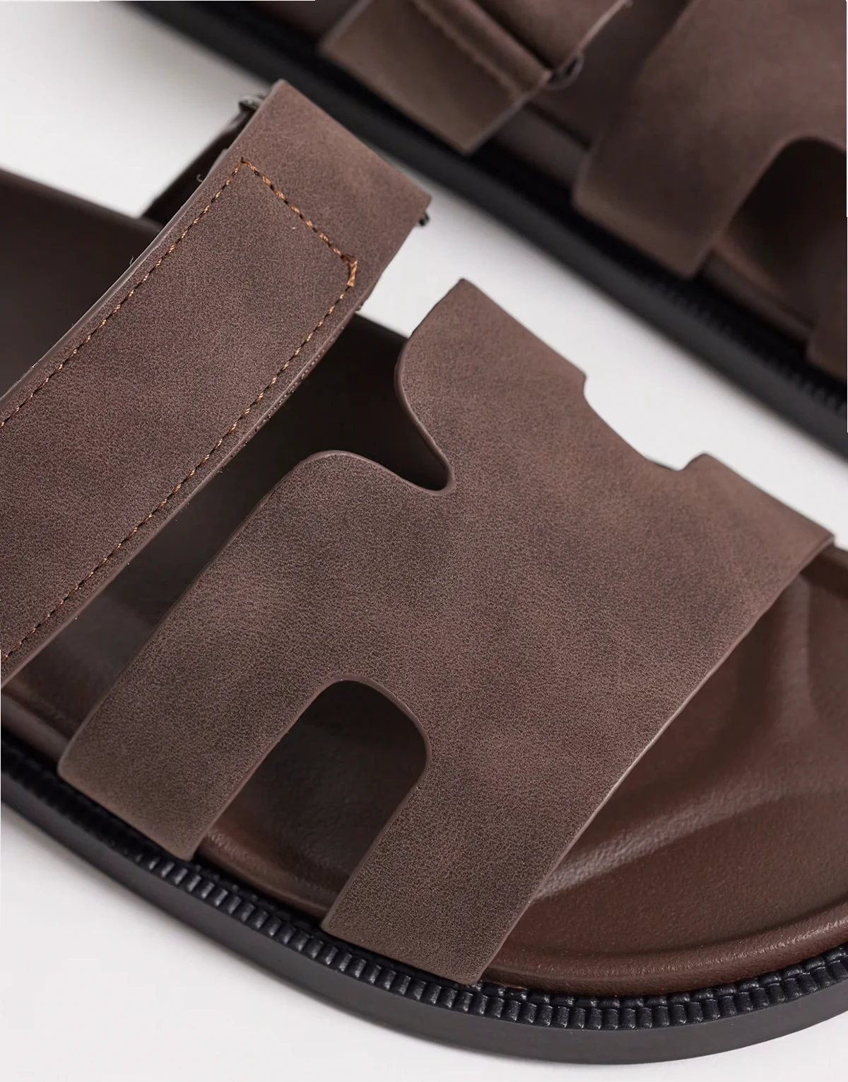 – Brązowe sandały bez pięty z korkową podeszwą
