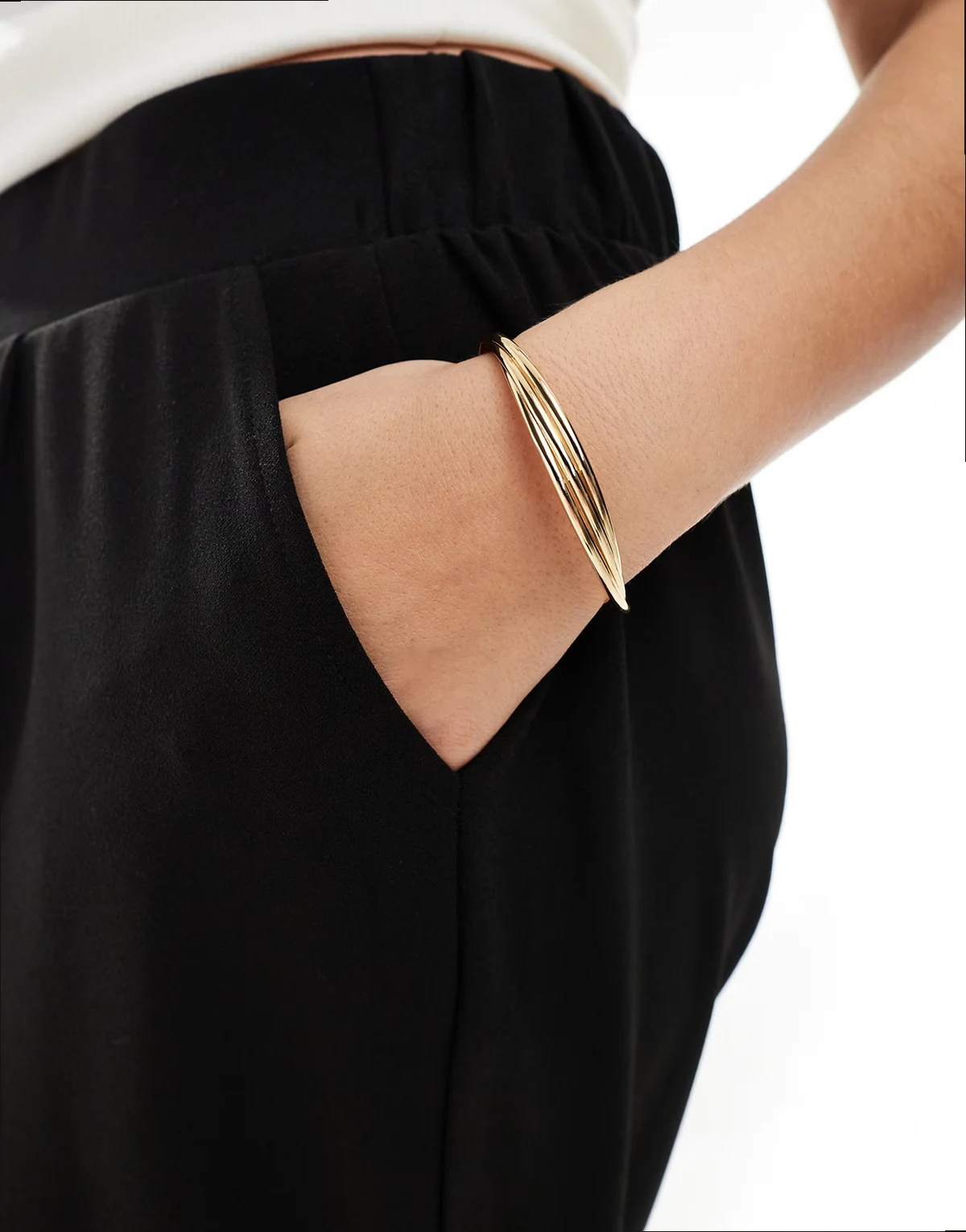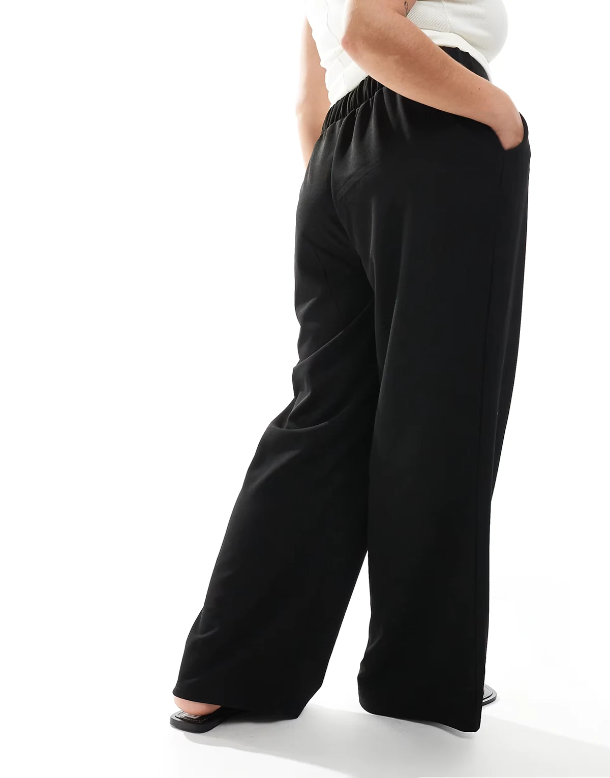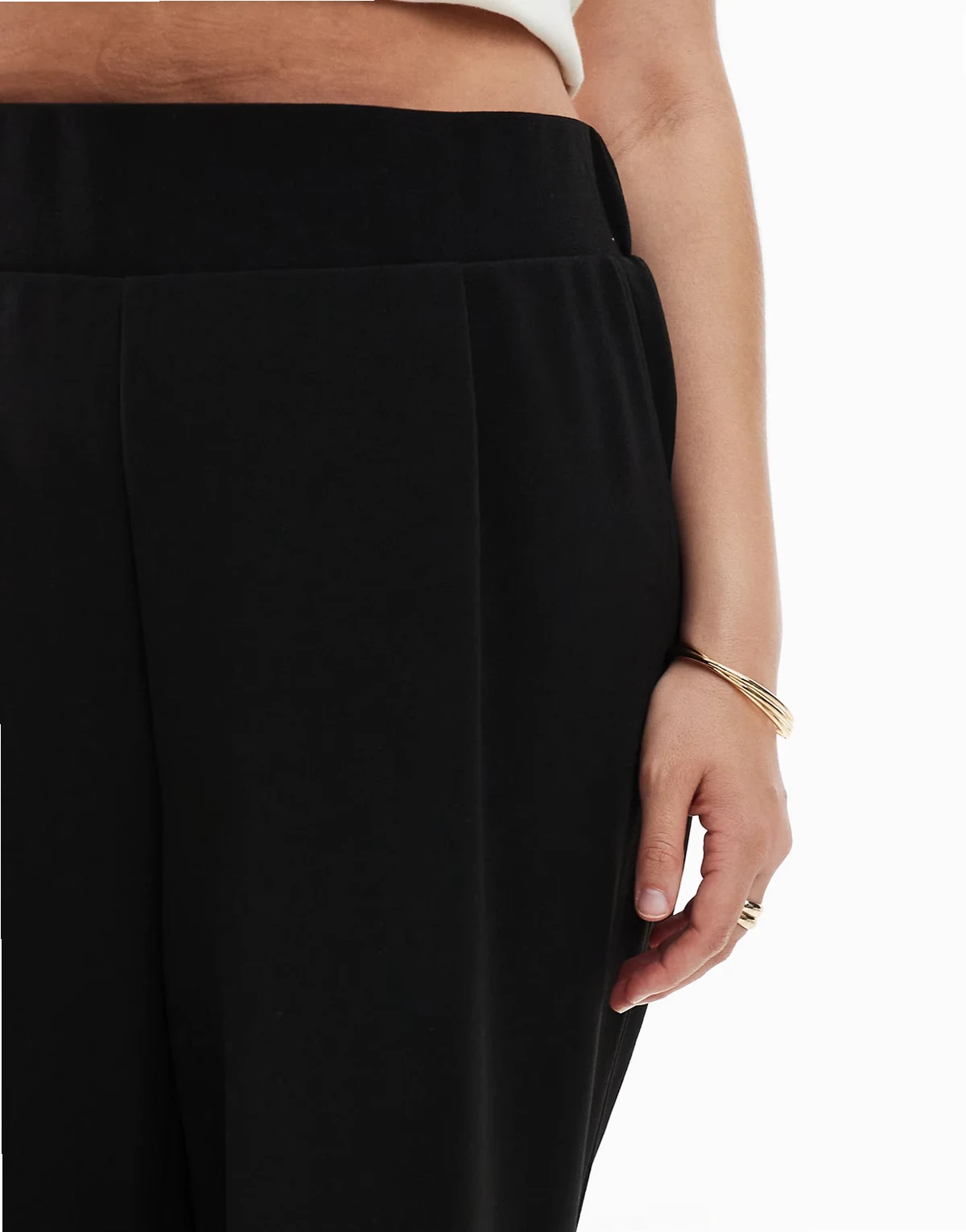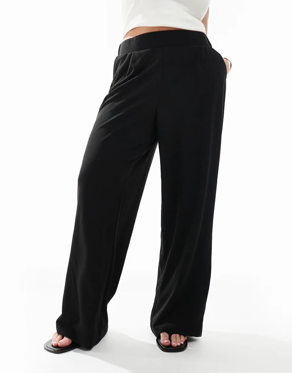 – Czarne spodnie z szerokimi nogawkami z dżersejowej krepy