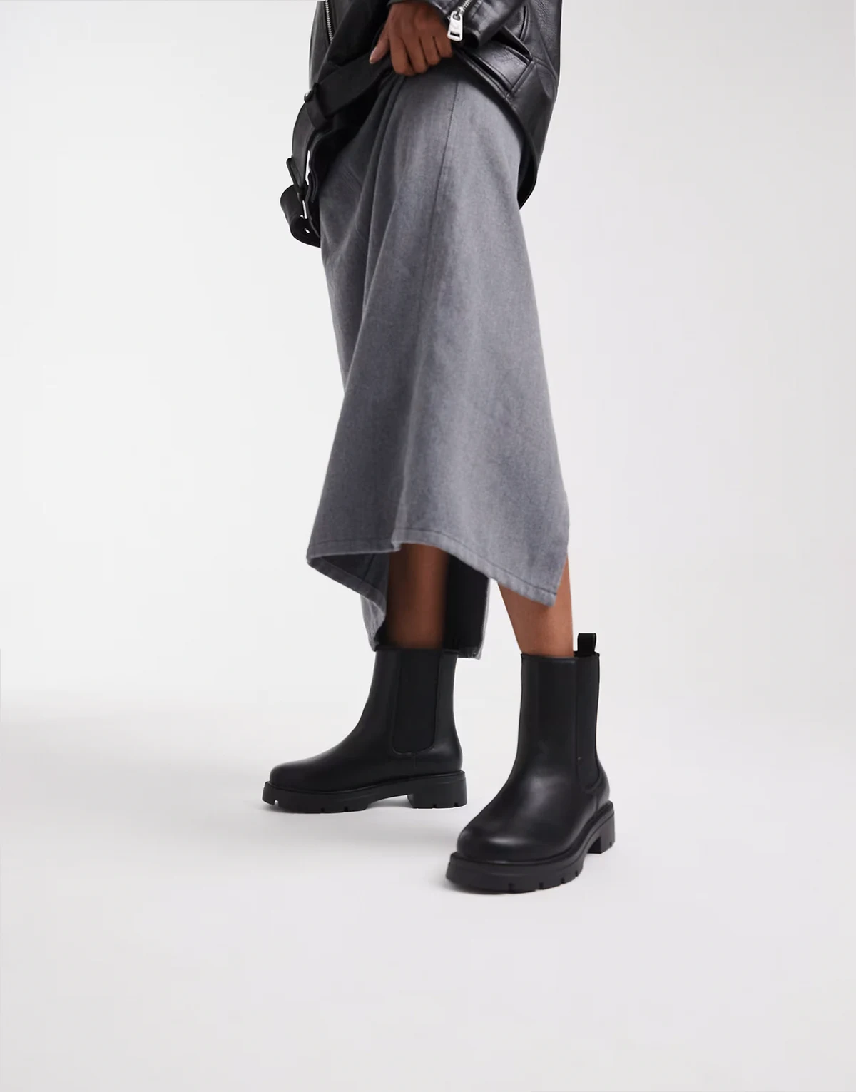 Wide Fit – Abbie – Czarne botki sztyblety na grubej podeszwie
