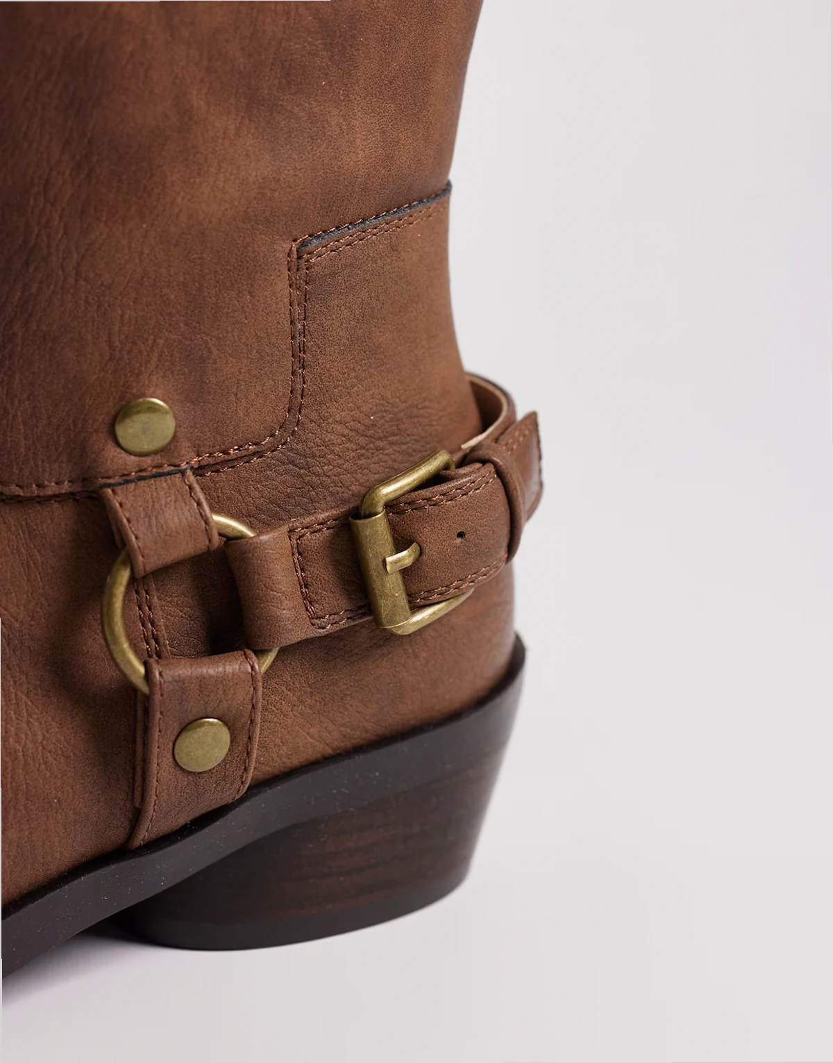 – Brązowe zamszowe botki z obcasem kubańskim i kowbojskim przeszyciem