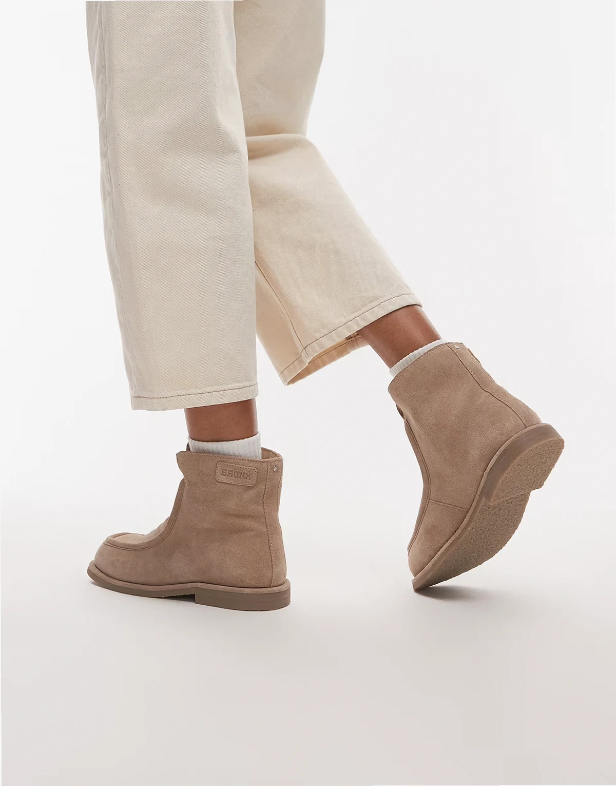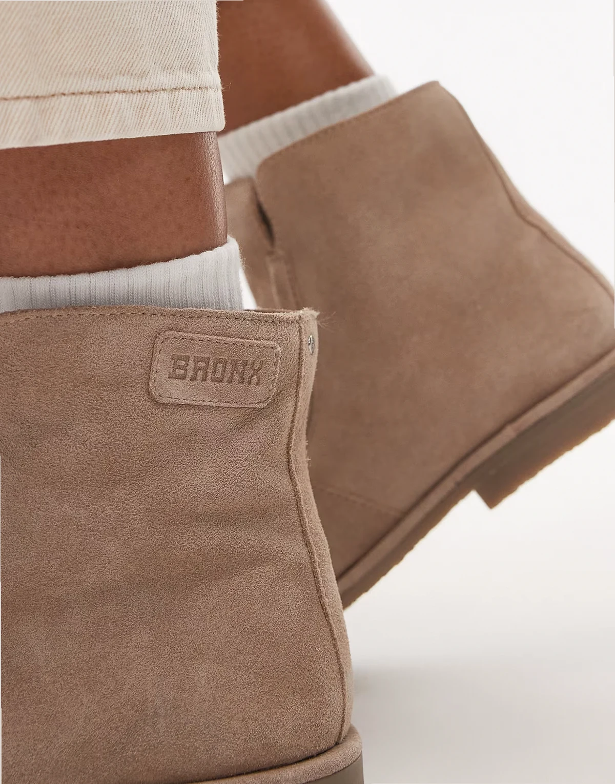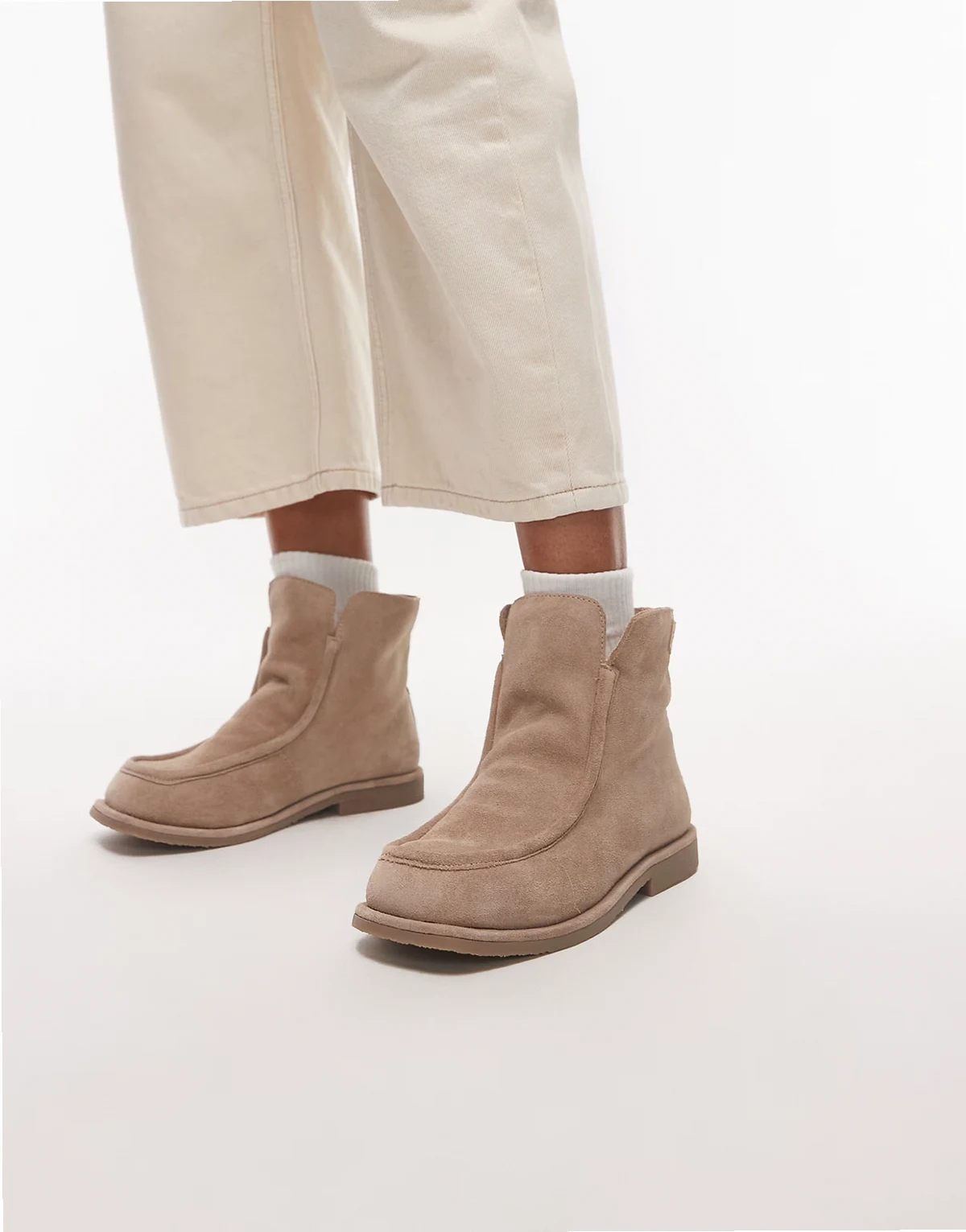 – Miękkie beżowe botki zamszowe