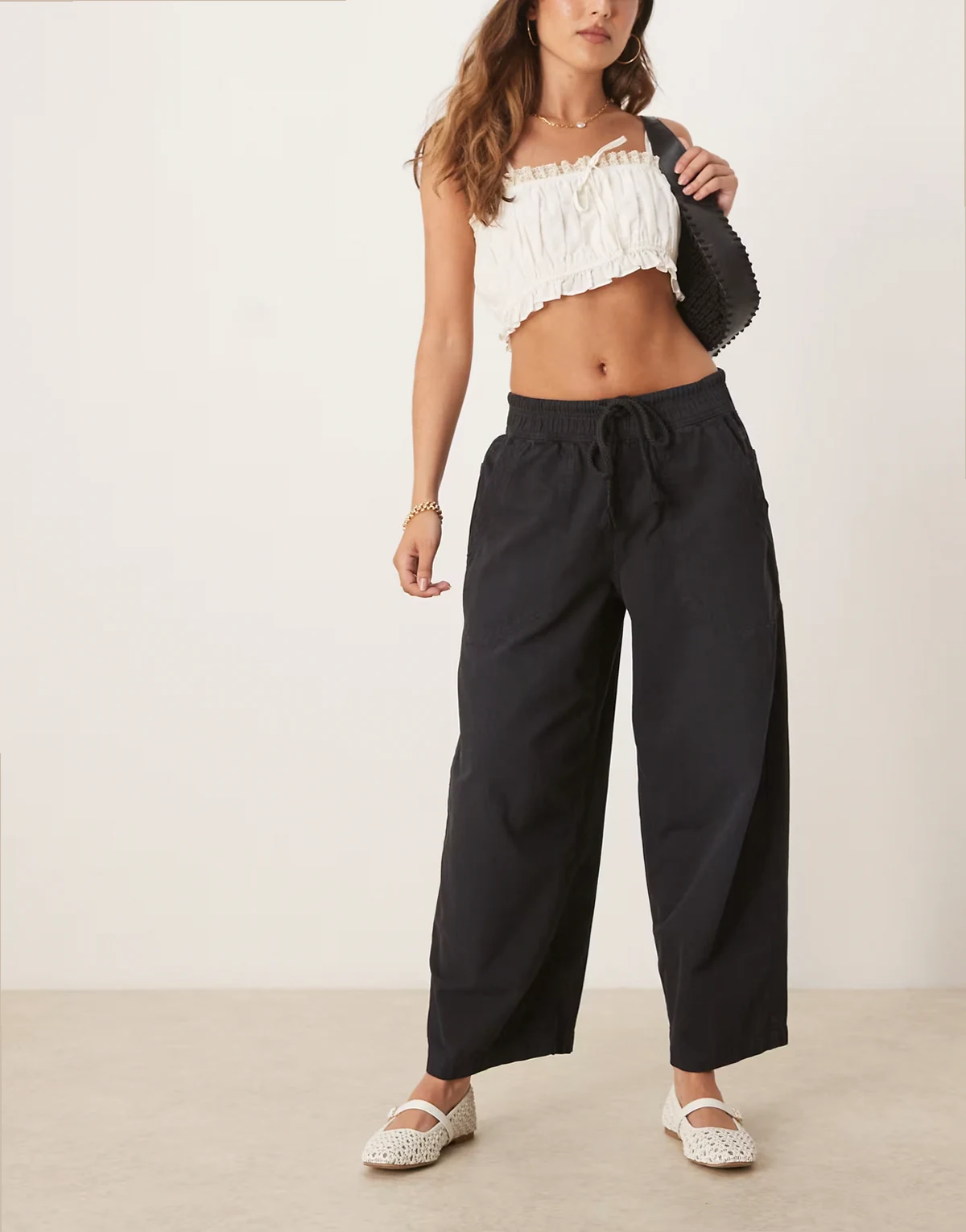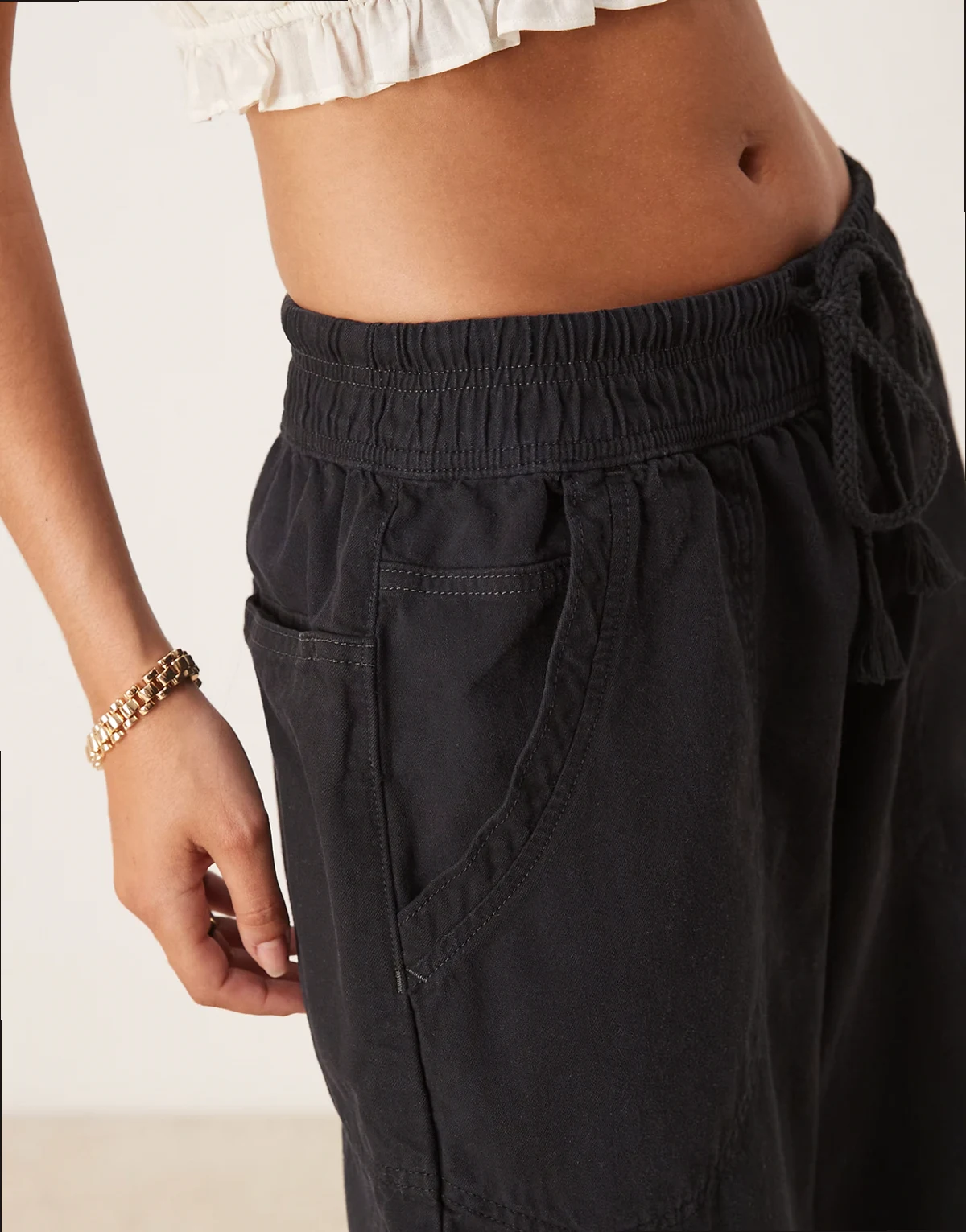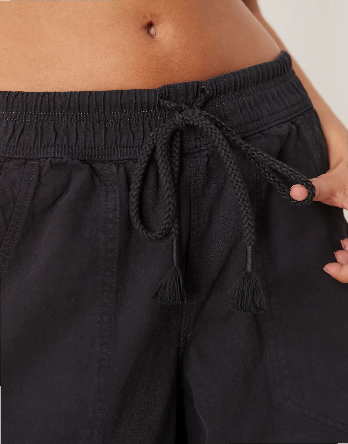 – Days End – Wciągane lniane spodnie w kolorze czarnym