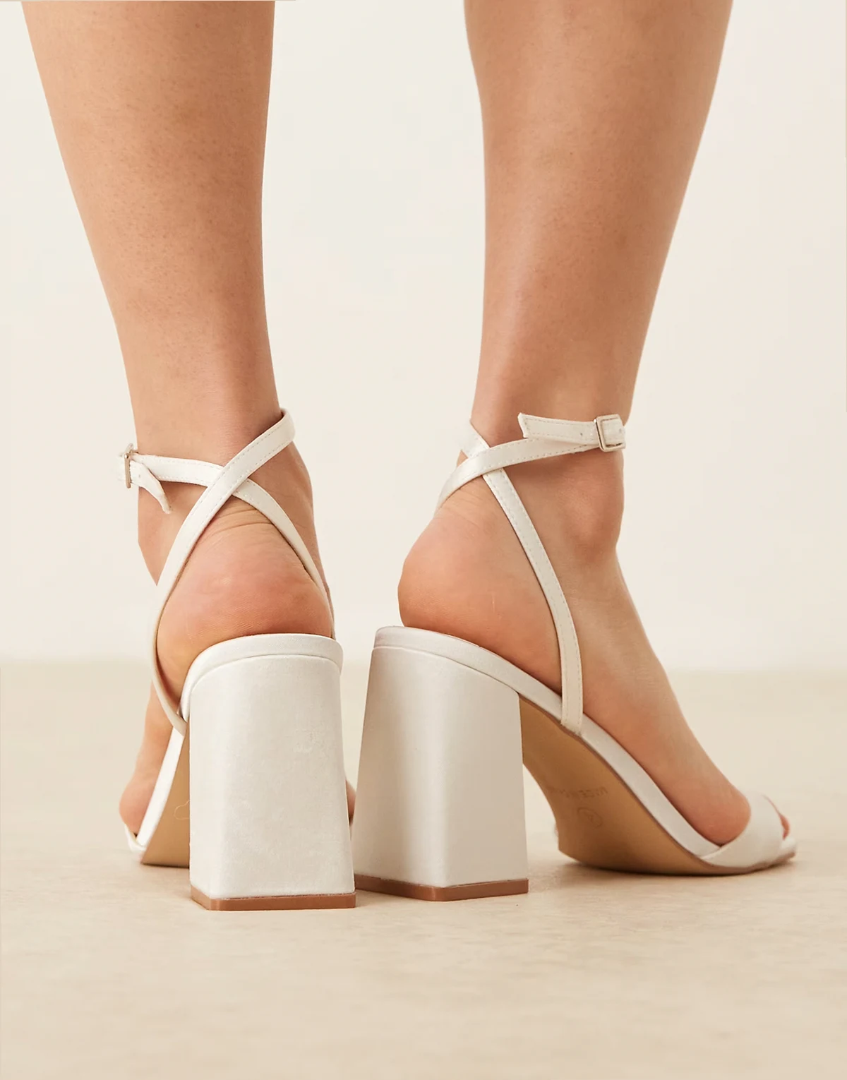 4. – Bridal Wink 2 – Satynowe sandały na obcasie w kolorze kości słoniowej