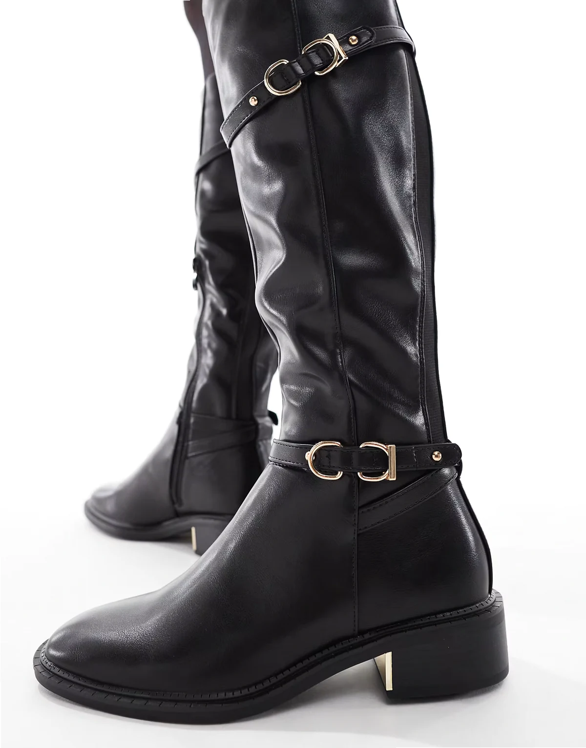 – Latte – Czarne botki z zapięciem na klamrę w jeździeckim stylu