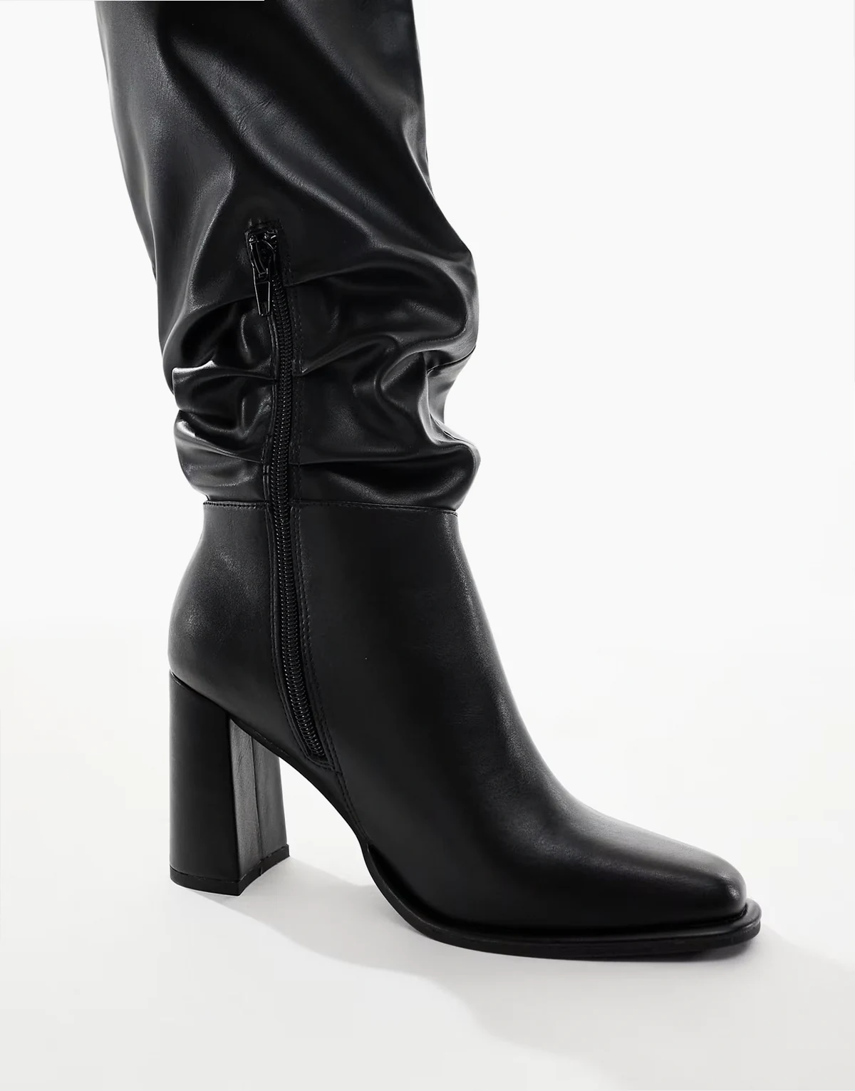 ASOS DESIGN – Czarne kowbojskie sztyblety z imitacji skóry na obcasach kubańskich ze srebrnymi noskami $84.99 ★★★★★ (1)