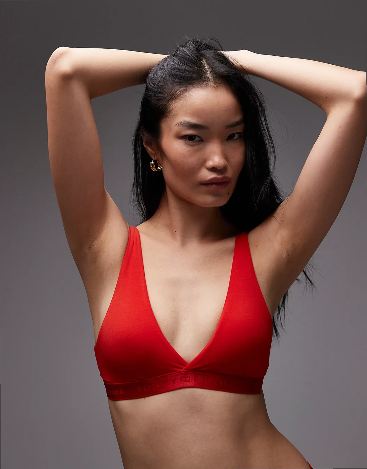 – Modern – Czerwony biustonosz z trójkątnymi miseczkami i logo