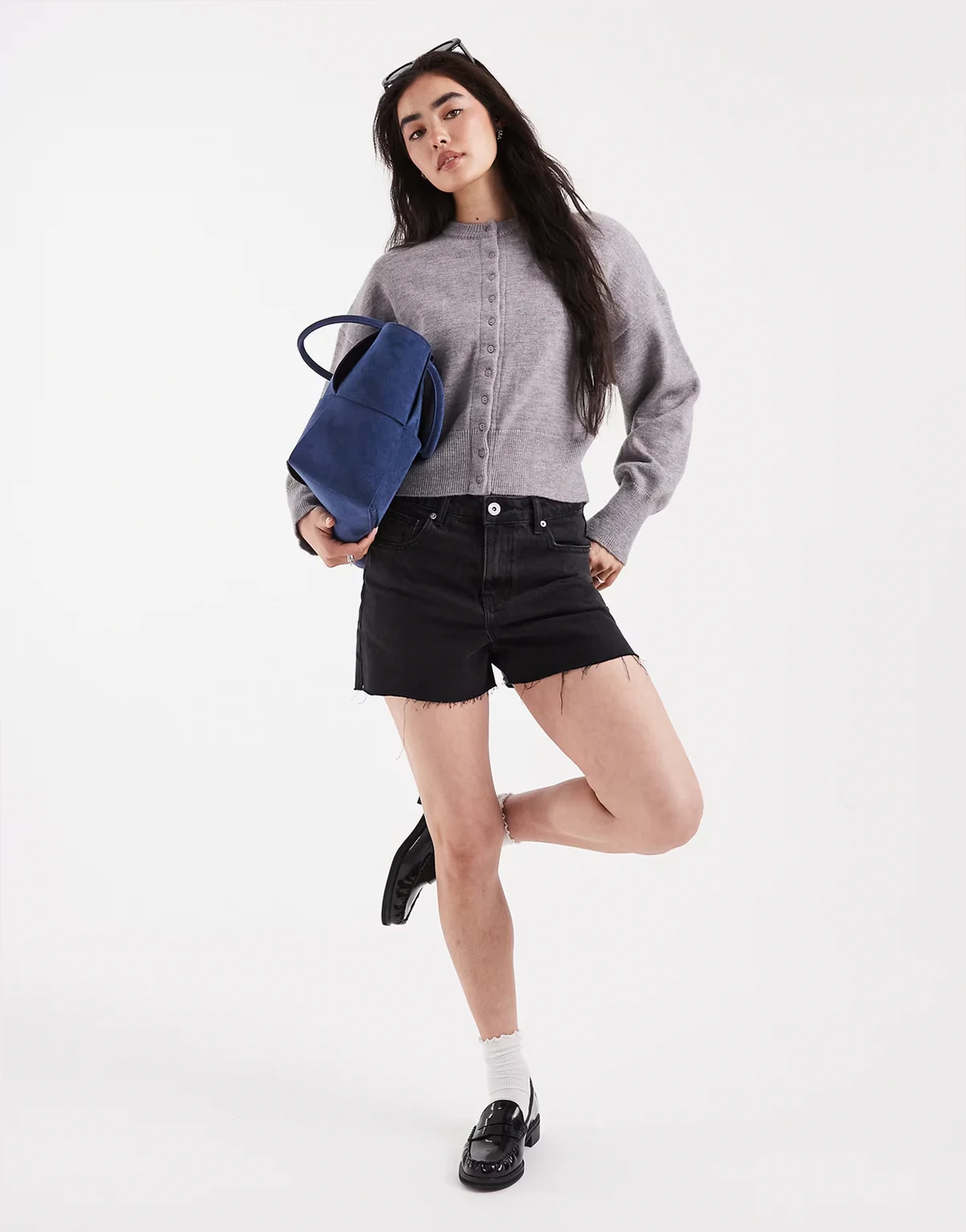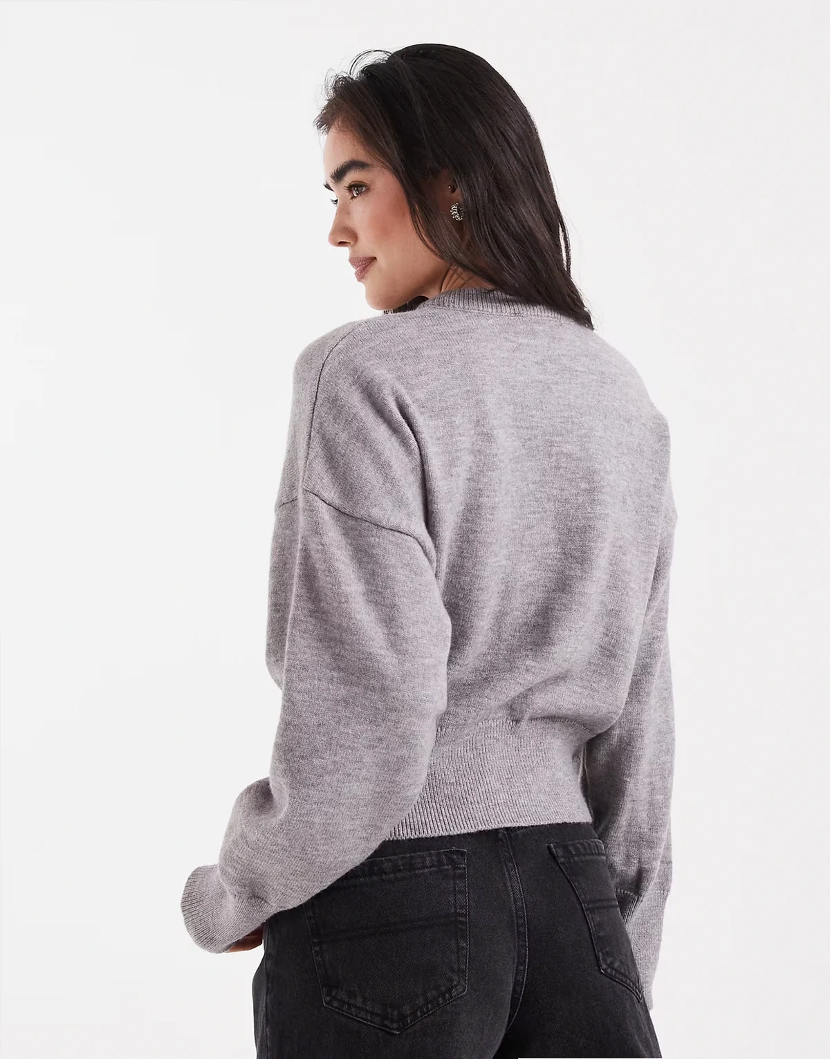 – Dopasowany w talii szary kardigan