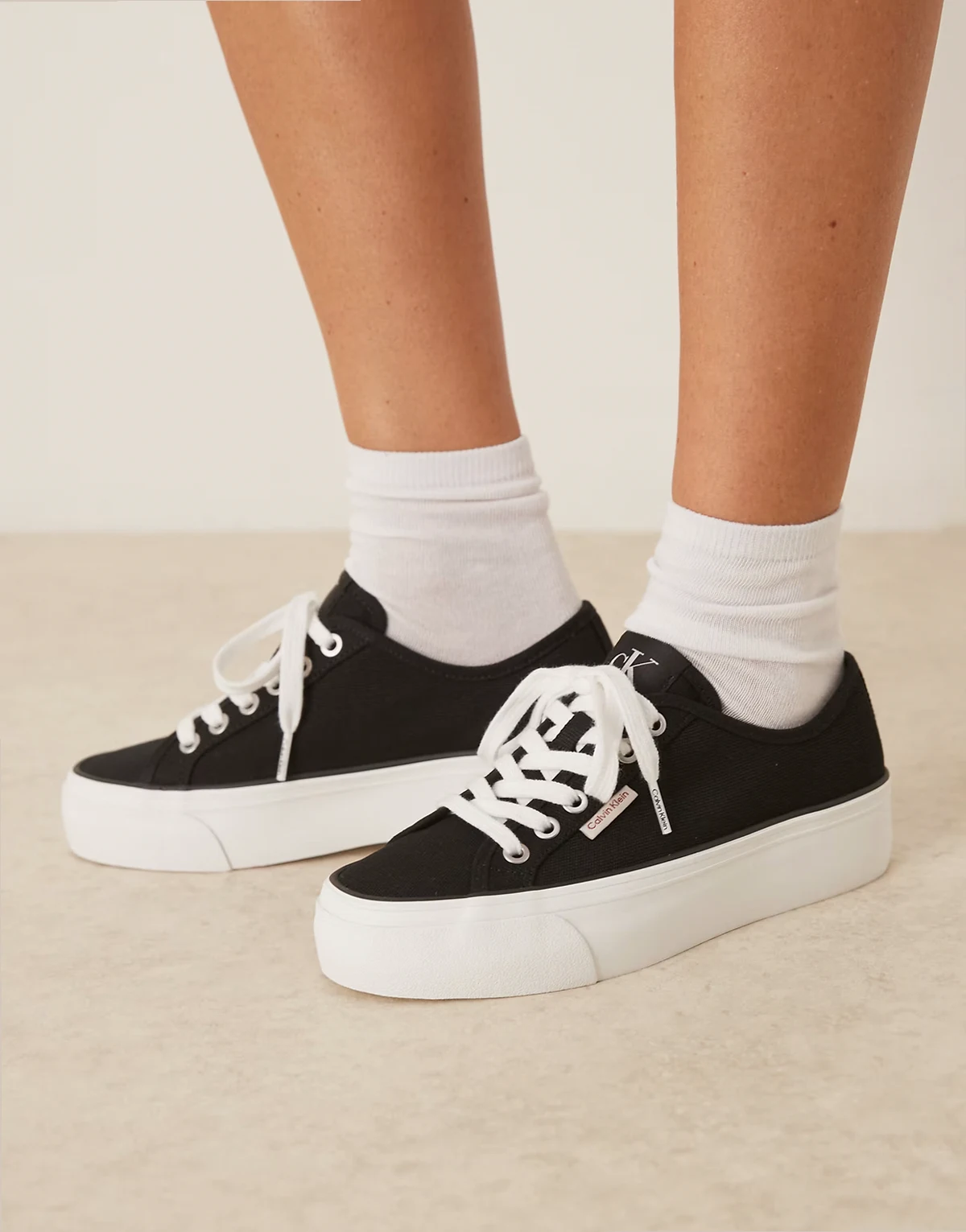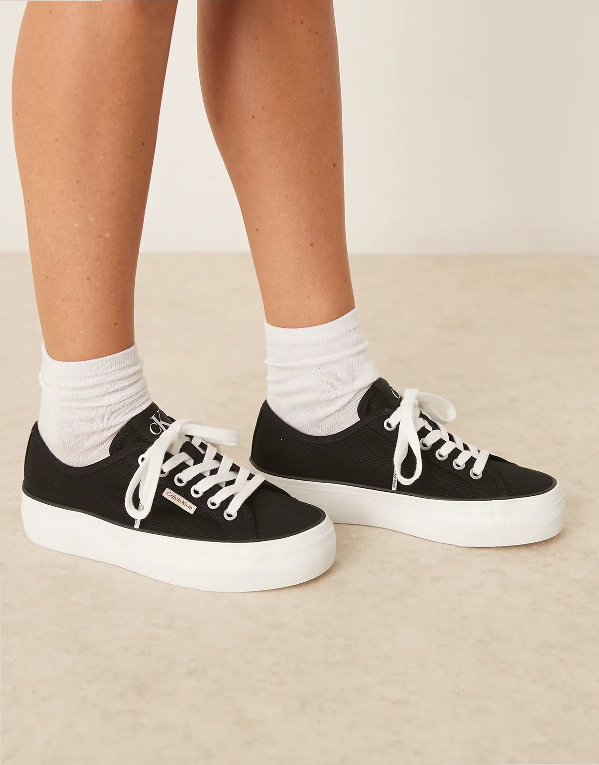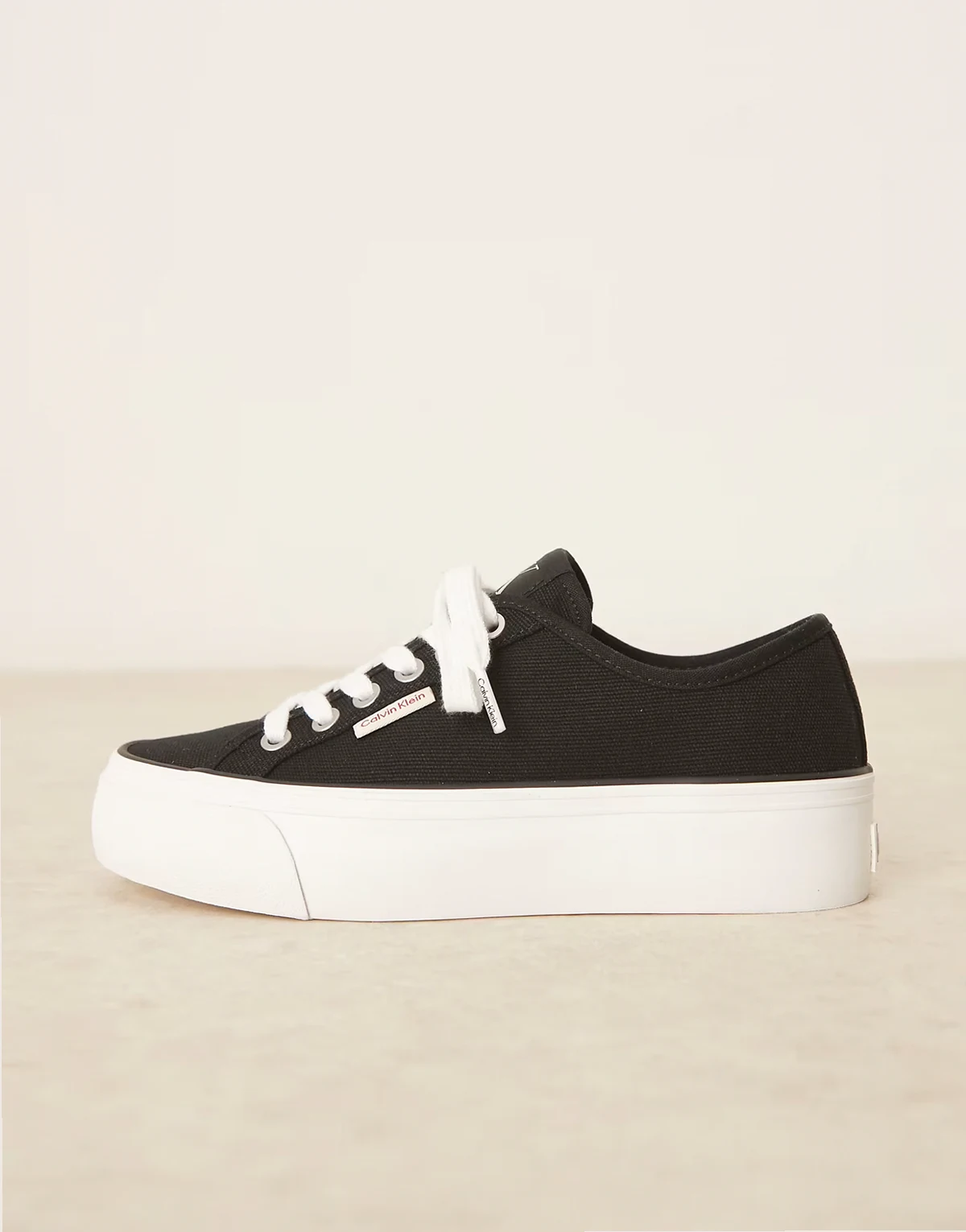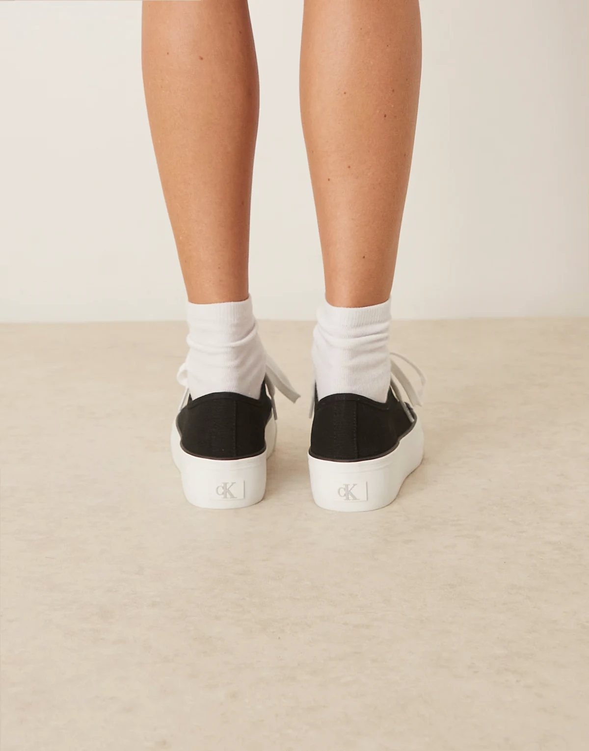 – Czarne płócienne buty sportowe na wulkanizowanej płaskiej platformie
