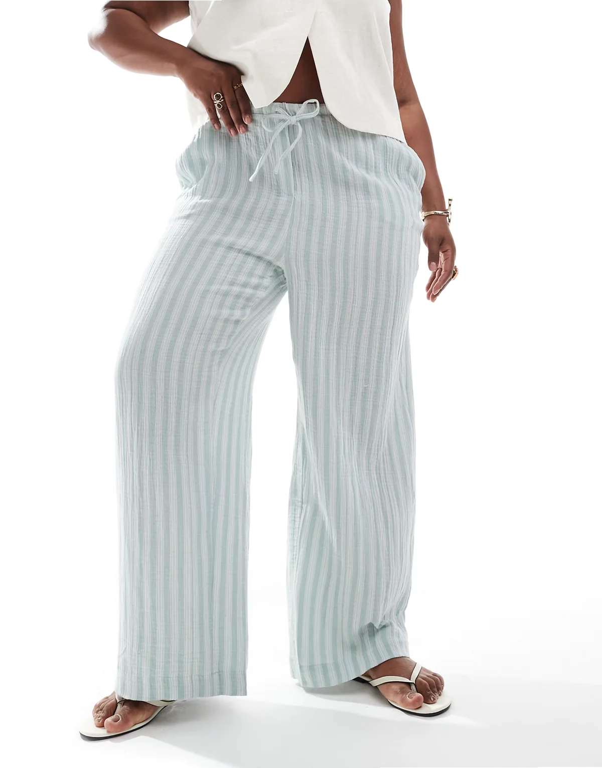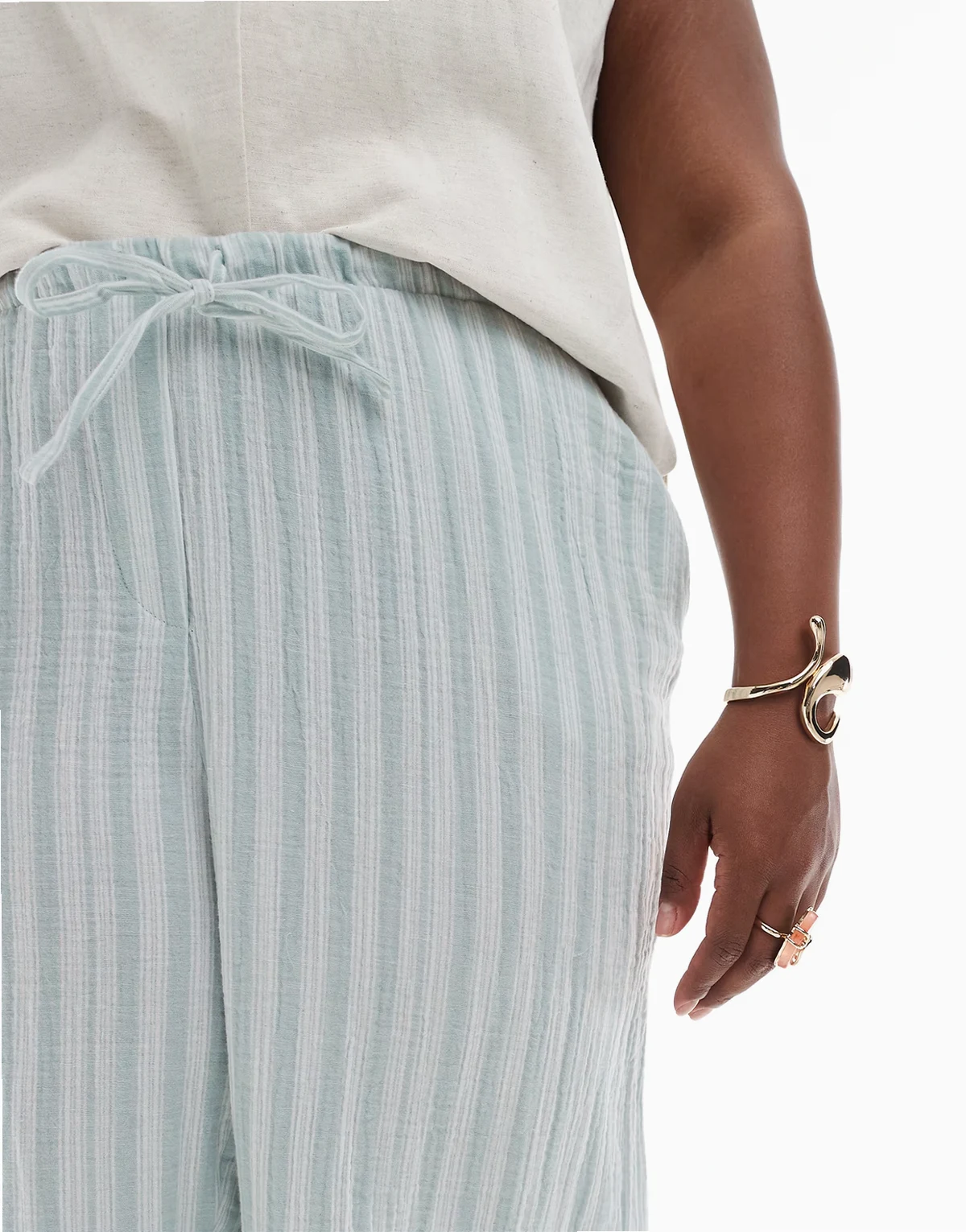 – Bawełniane spodnie z szerokimi nogawkami w zielone paski