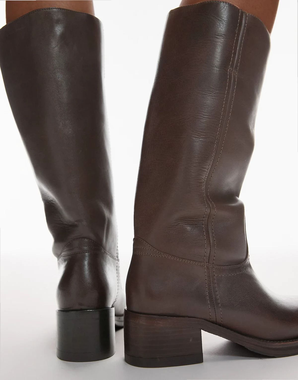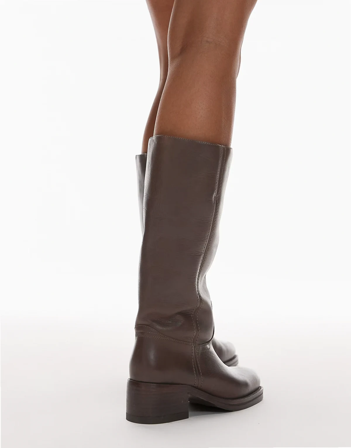 – Ky-Ley – Brązowe botki do kolan w jeździeckim stylu