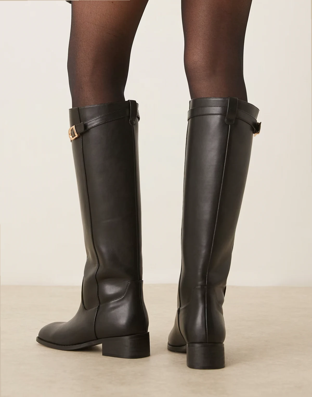 4. – Czarne botki jeździeckie do kolan z klamrami