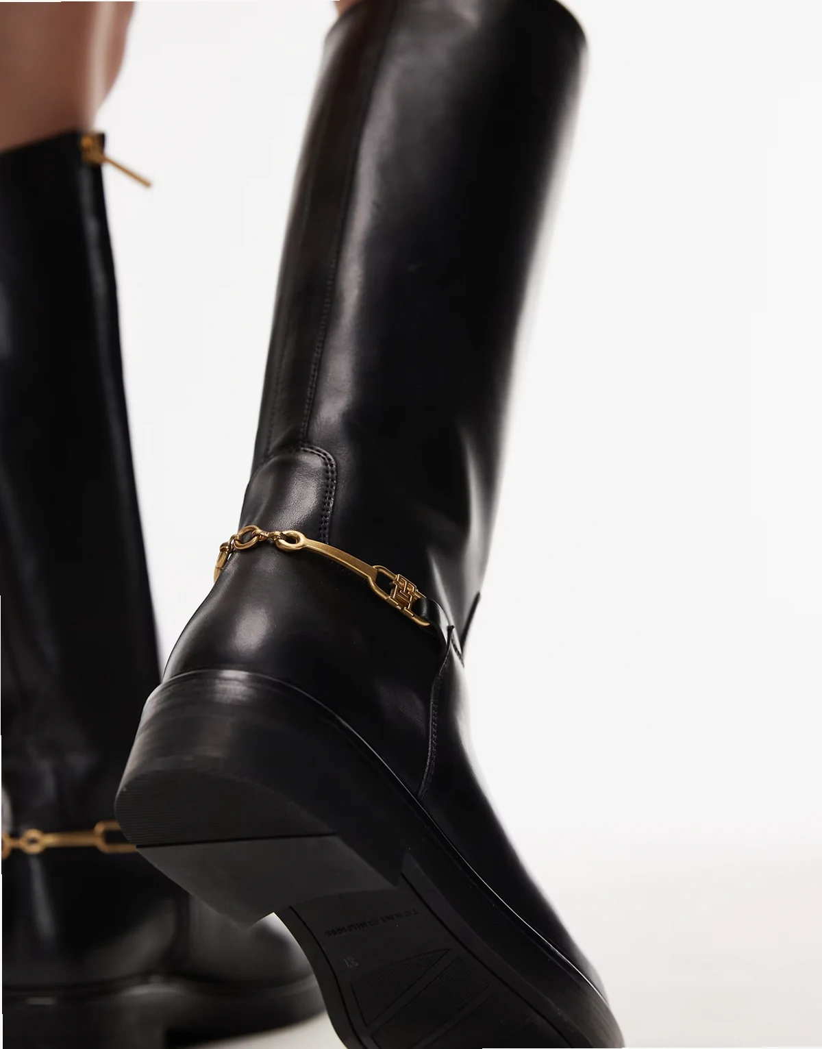 – Czarne kowbojskie sztyblety z imitacji skóry na obcasach kubańskich ze srebrnymi noskami