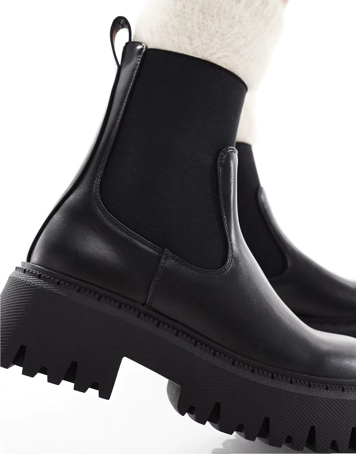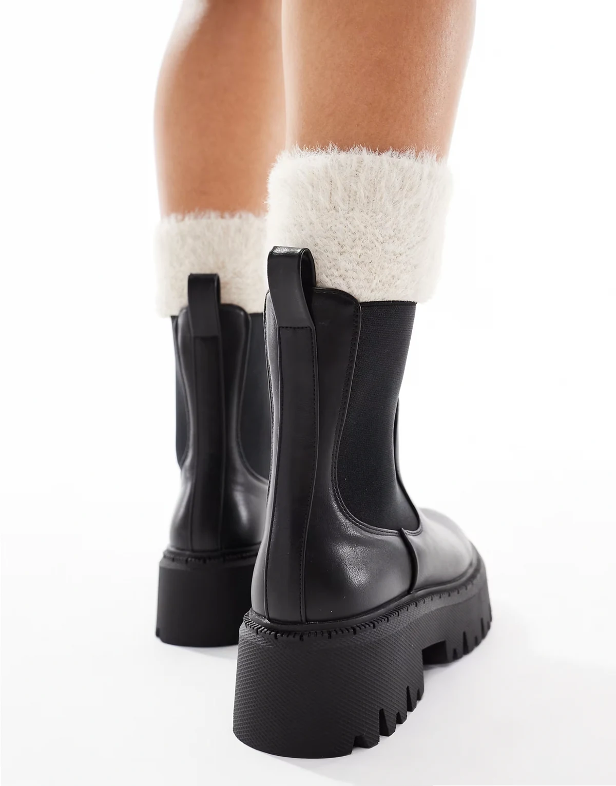 – Stella – Czarne botki sztyblety na grubej podeszwie