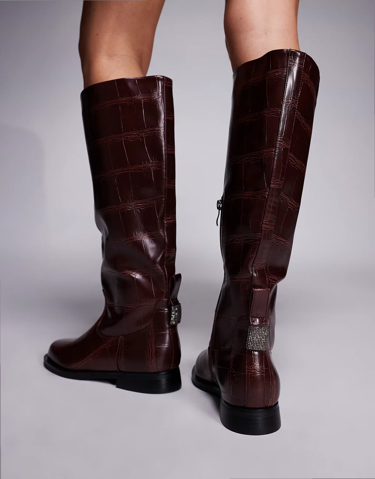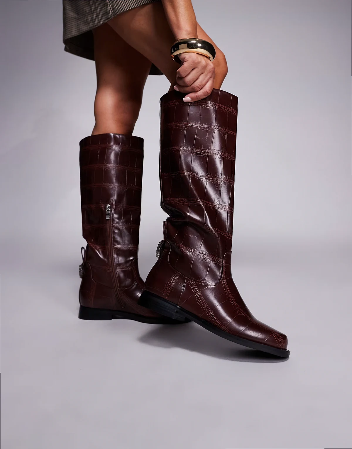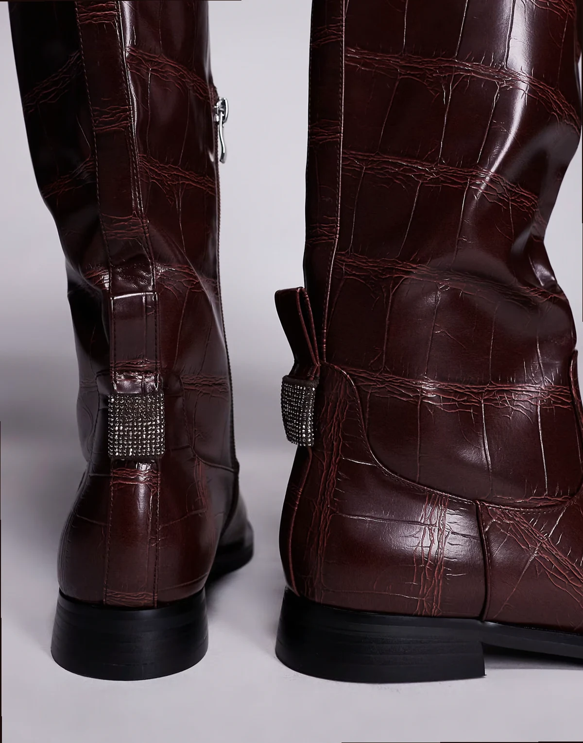 SIMMI London – Bernie – Bordowe buty jeździeckie do kolan w krokodyli wzór