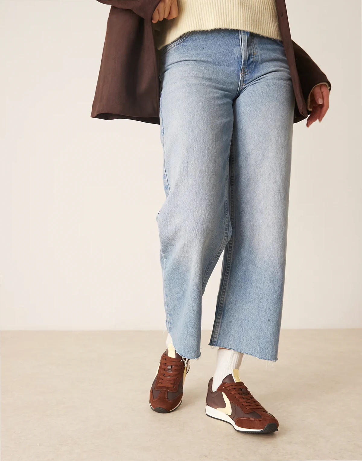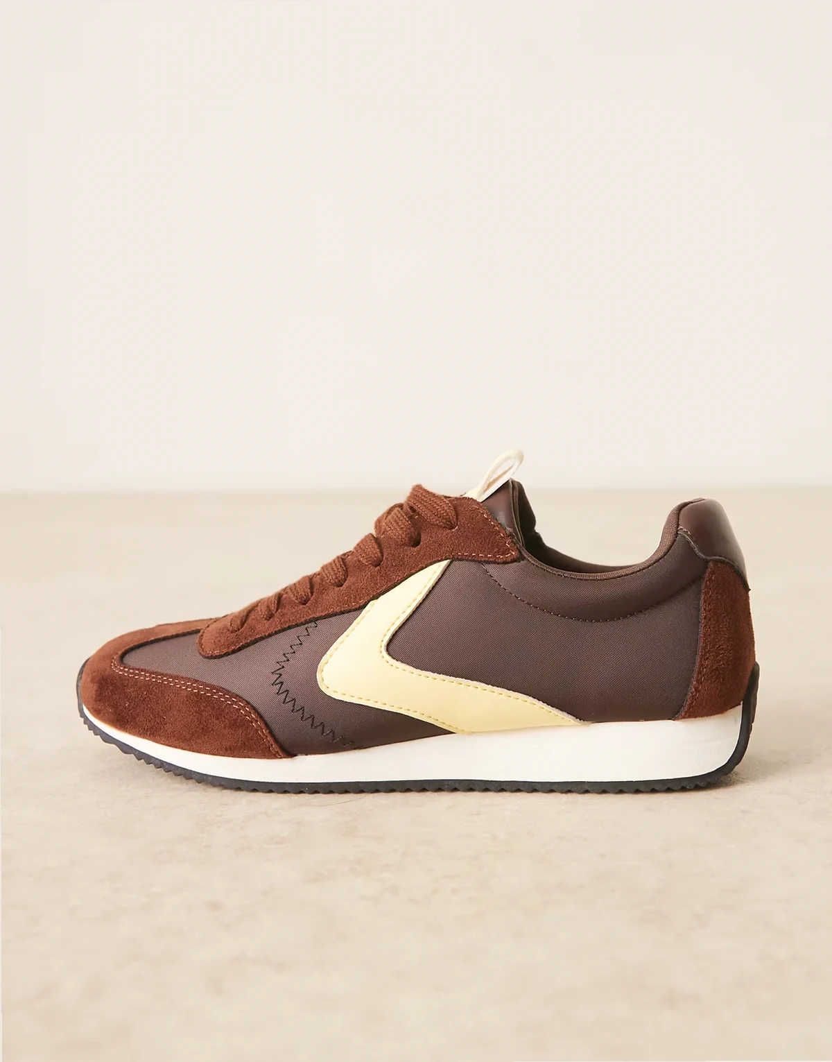 – Brązowo-żółte sznurowane buty do biegania