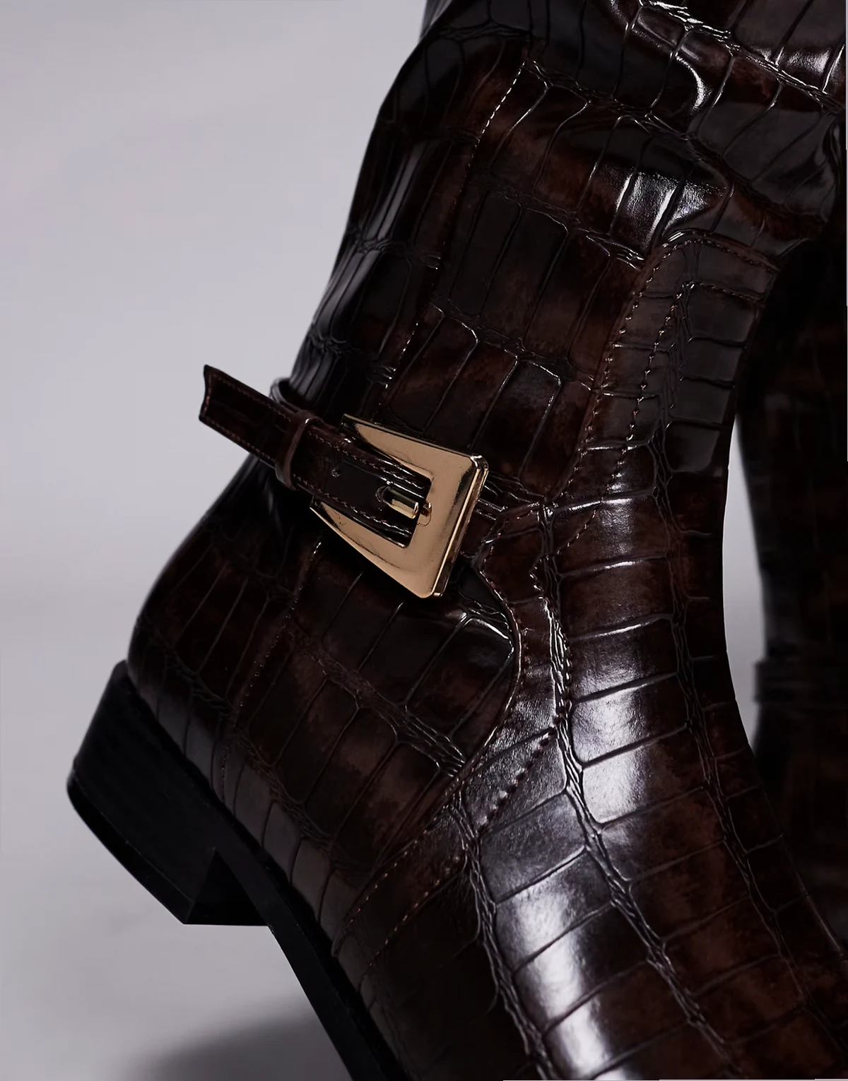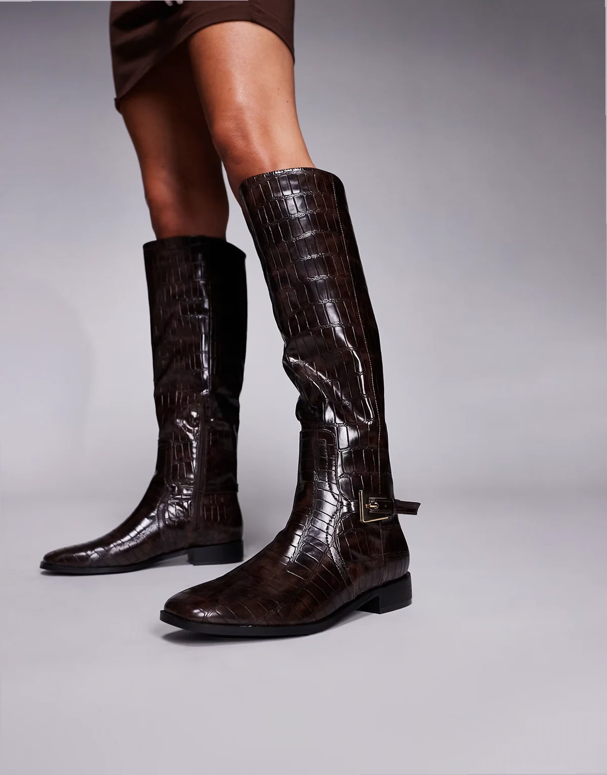 – Mackie – Brązowe kozaki do kolan z klamrami